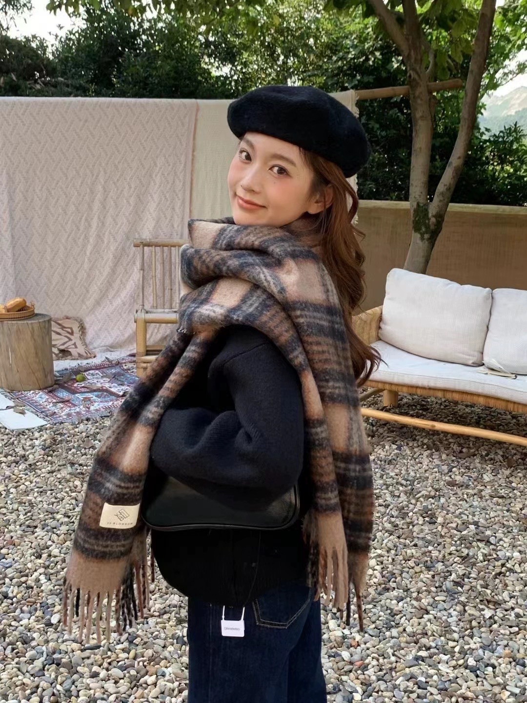 Maillard 높은 감각 격자 무늬 스카프 목도리 24 새로운 가을과 겨울 빈티지 INS 스타일 작은 빨간 책 같은 스타일