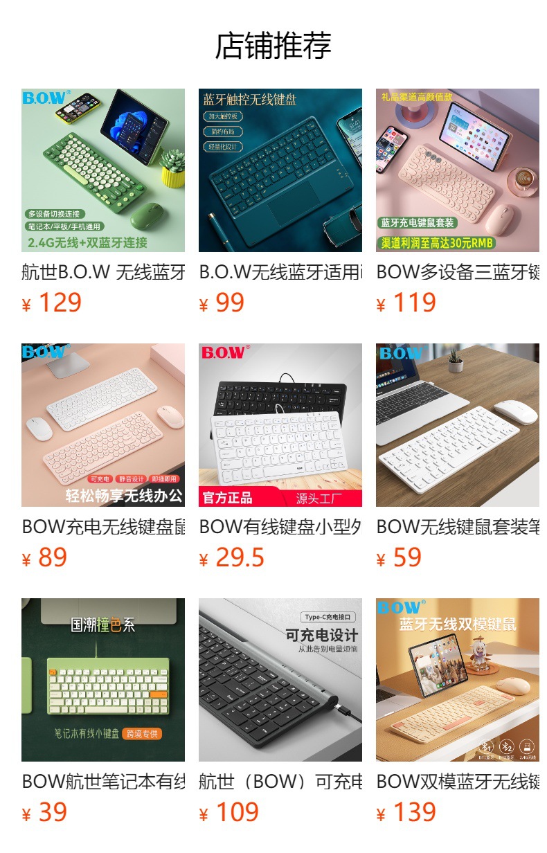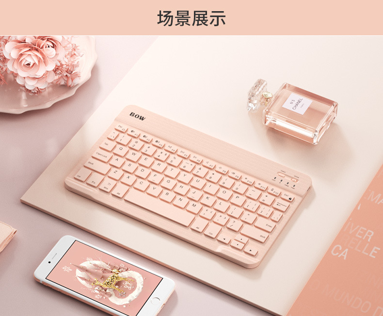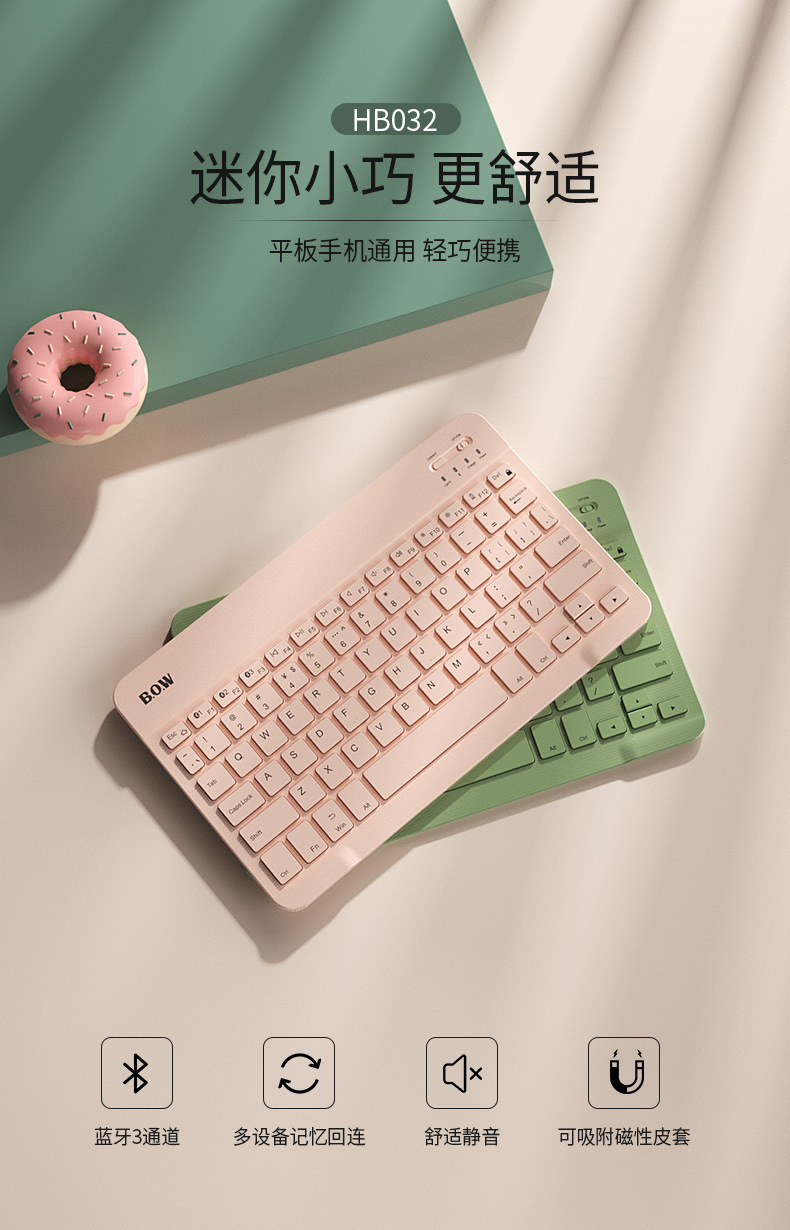 B. O.W Hangshi HB032 충전식 무선 3 블루투스 키보드 노트북 외부 iPad 태블릿스토어 가기