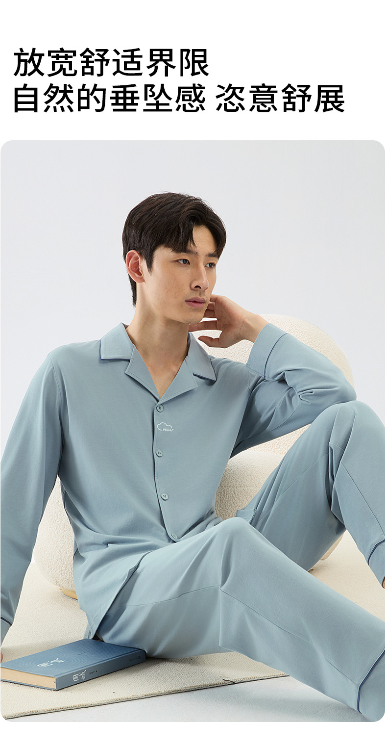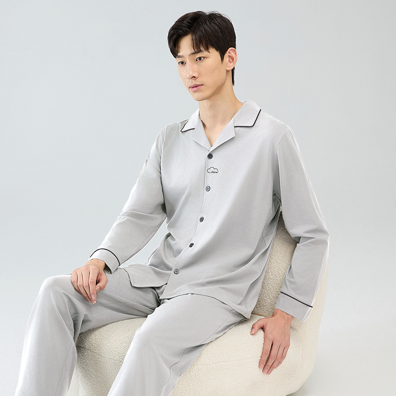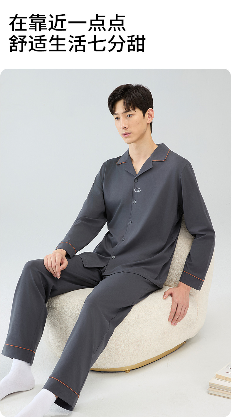 순수한면 남성 잠옷 하이 엔드 감각 느슨하고 편안한 단색 카디건을 착용 할 수 있습니다 24 새로운 뜨거운 판매 홈 의류 도매스토어 가기