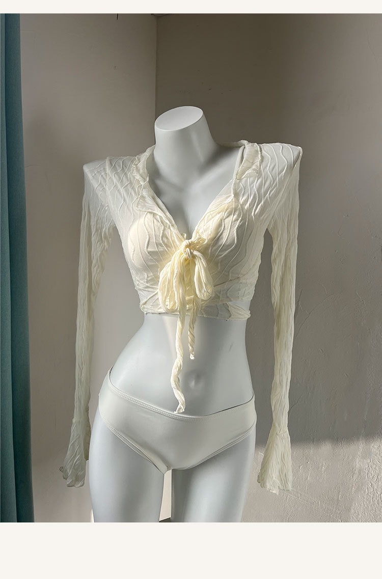 2025 새로운 긴팔 레이스 수영복 멀티 피스 세트, 섹시한 작은 가슴 푸시 업 여성용 휴가 온천 비키니