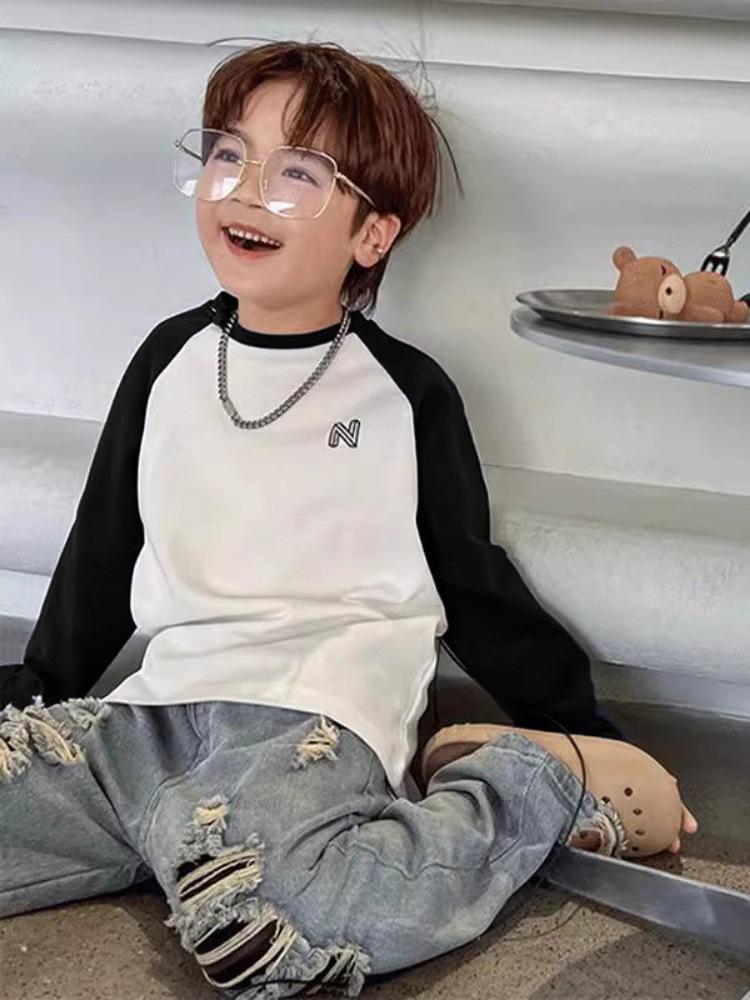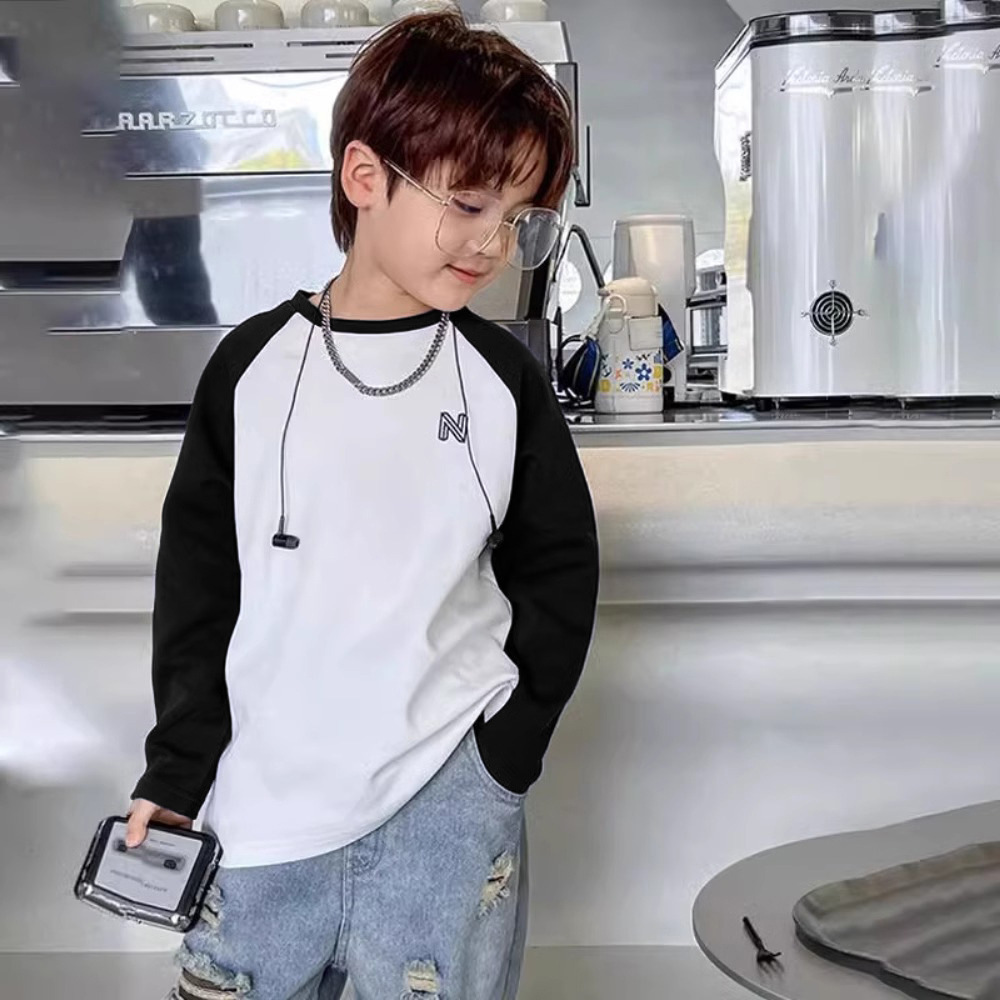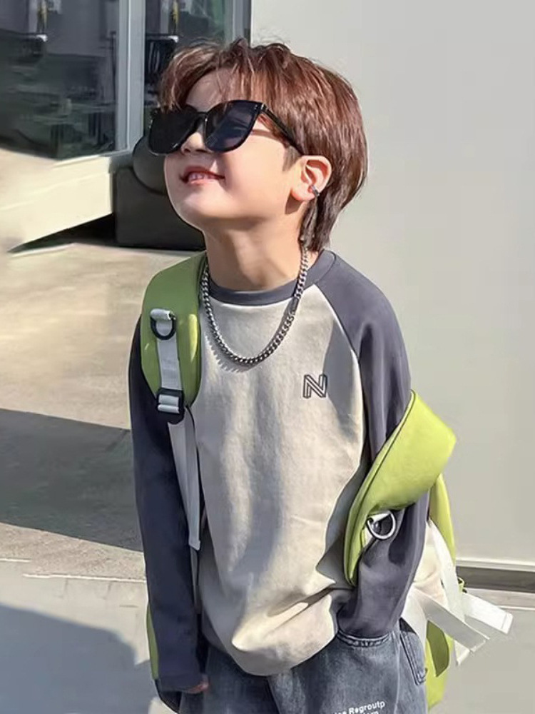 남자들의 긴 소매 티셔츠 봄과 가을 한국 스타일 중대형 어린이 내베이스 셔츠 대조 컬러 새로운 폭발 남자의 보물 잘 생긴 트렌디 T