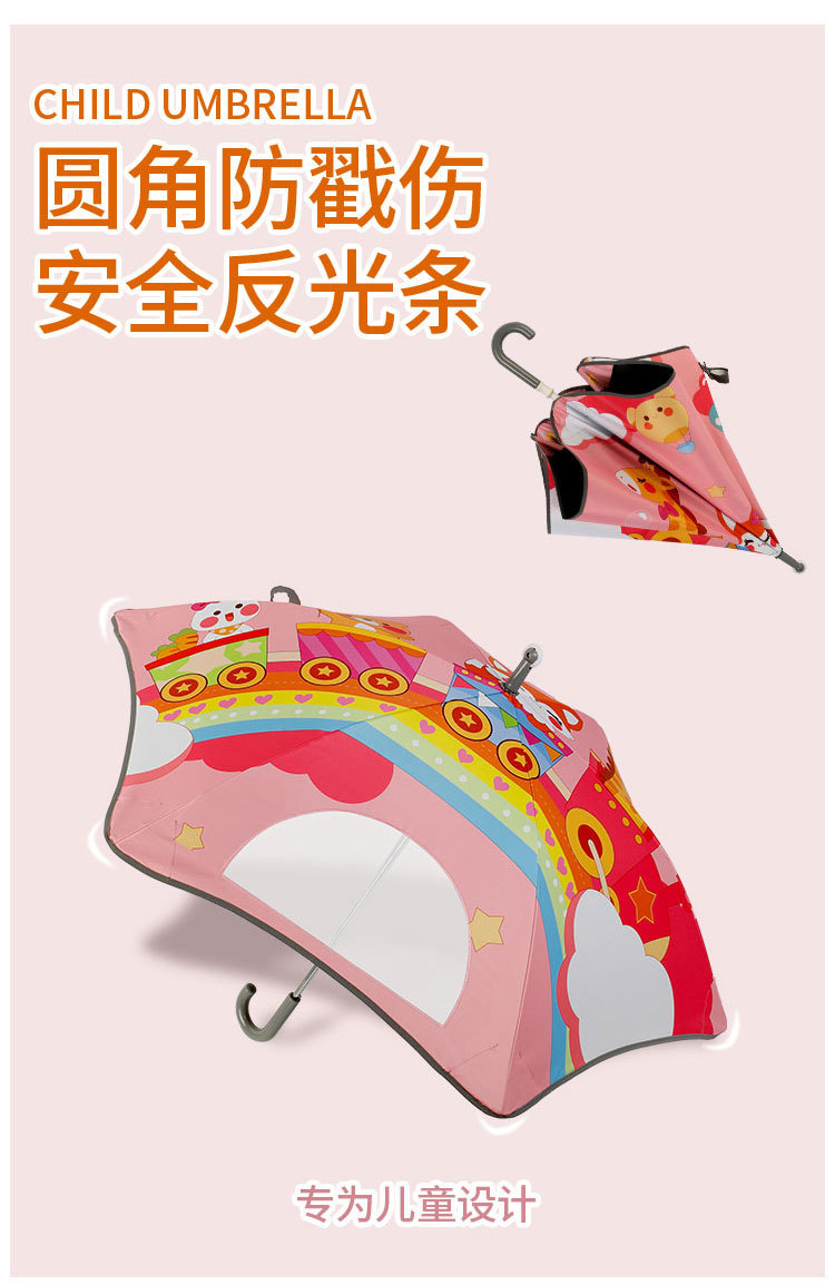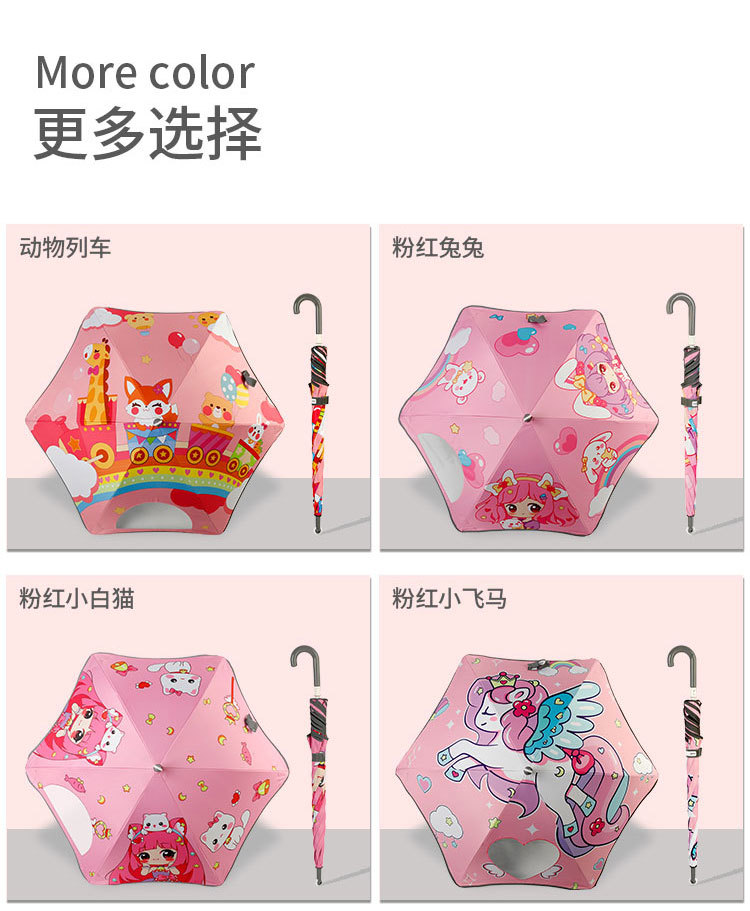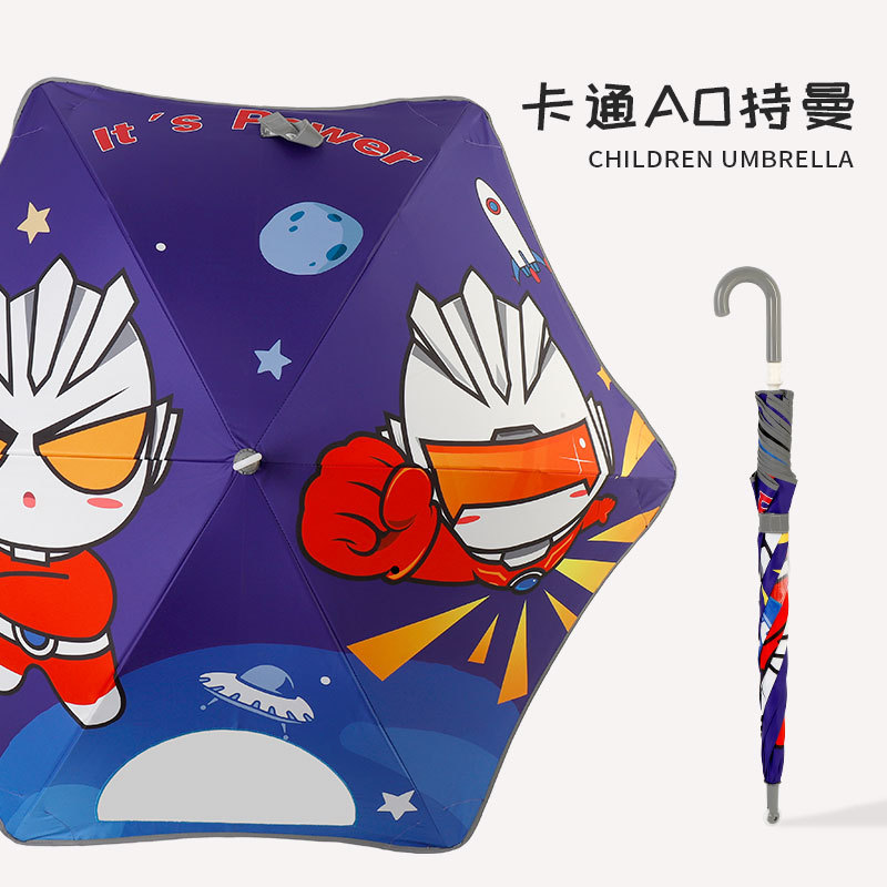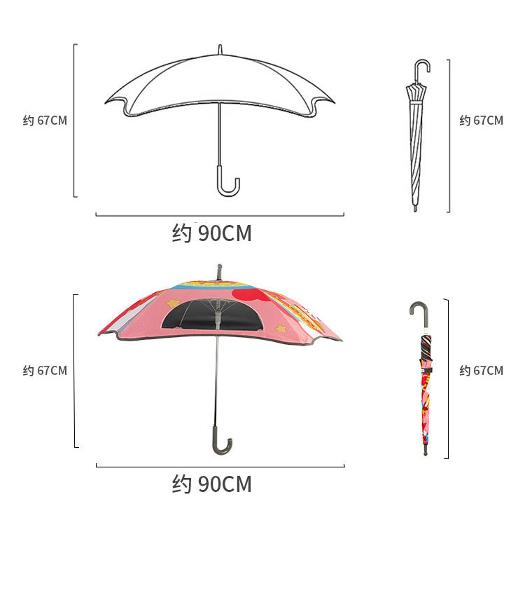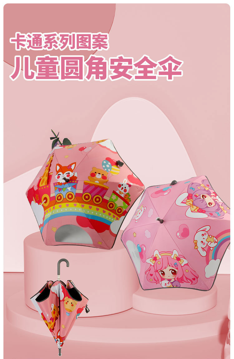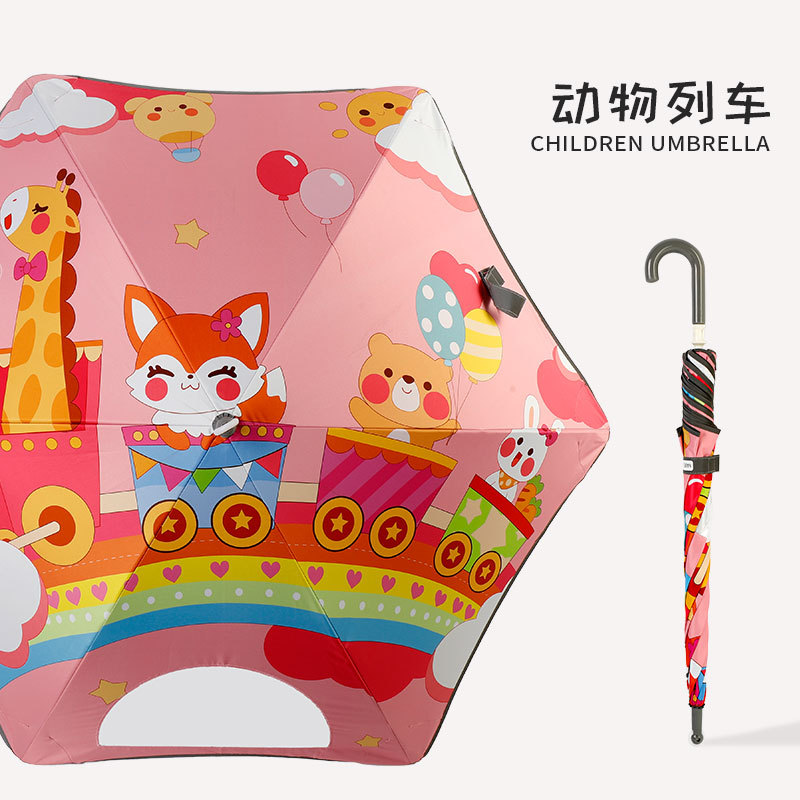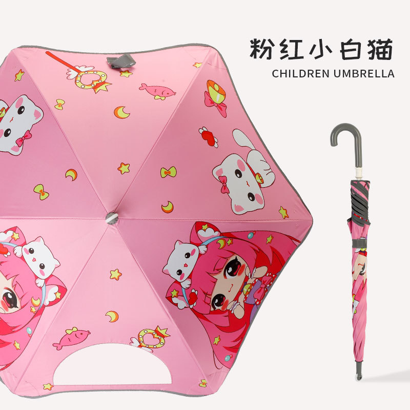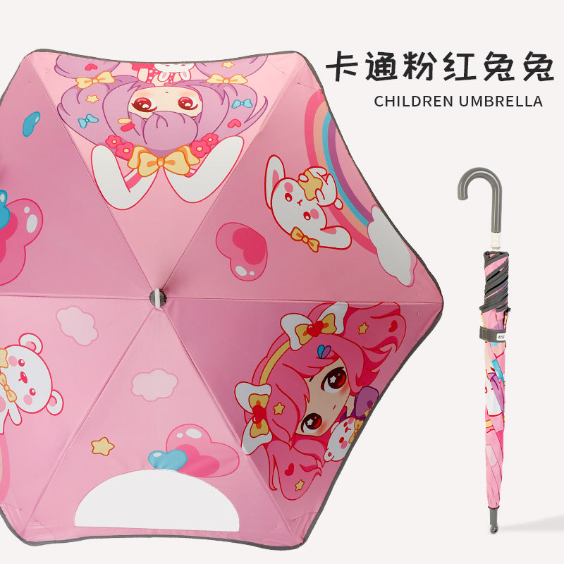 어린이 둥근 우산 만화 긴 손잡이 안전 도르래 비닐 비 우산 6-12 세 어린이 공장 도매