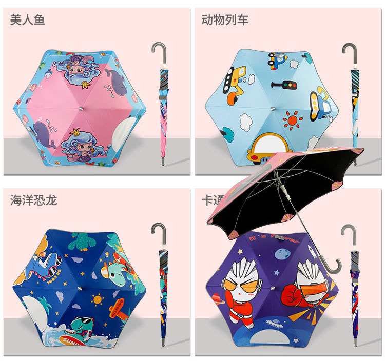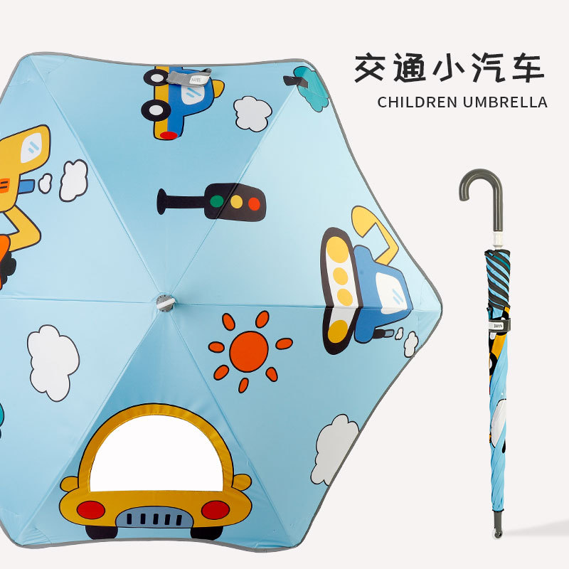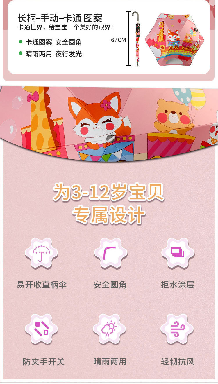 어린이 둥근 우산 만화 긴 손잡이 안전 도르래 비닐 비 우산 6-12 세 어린이 공장 도매스토어 가기