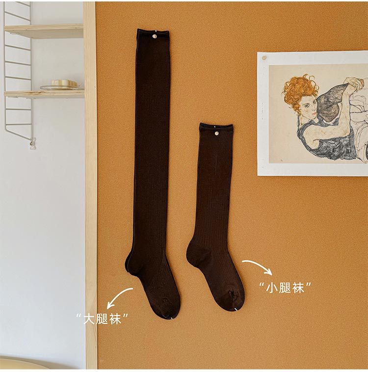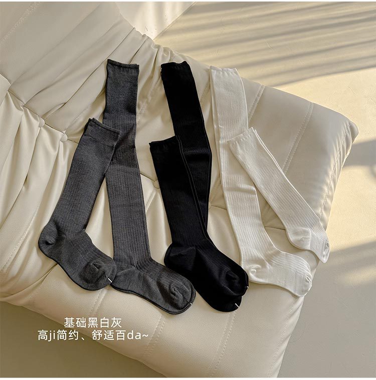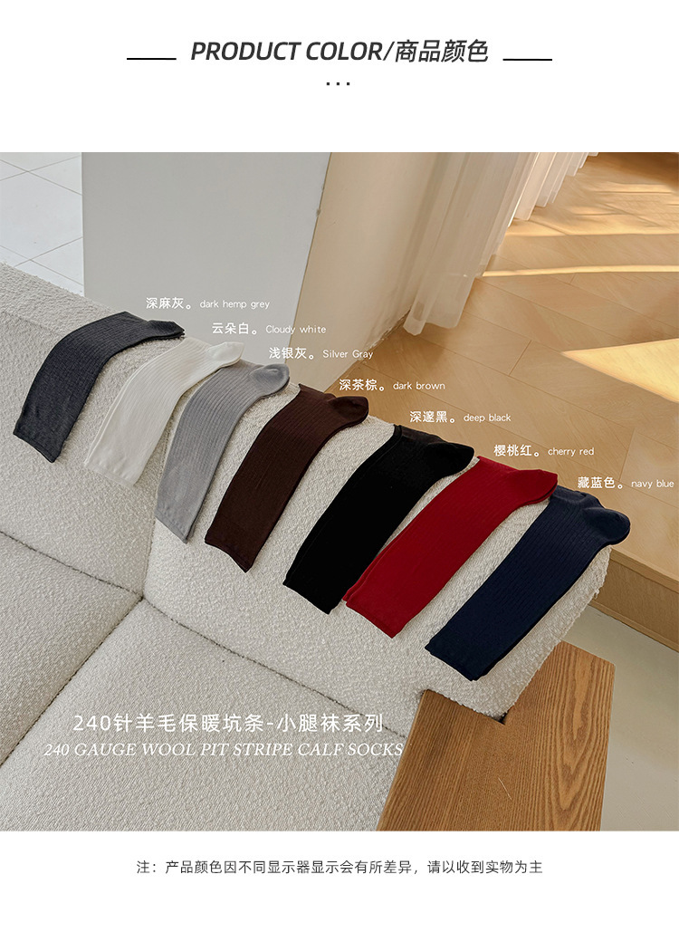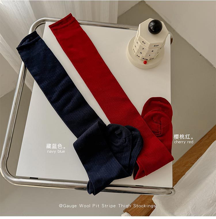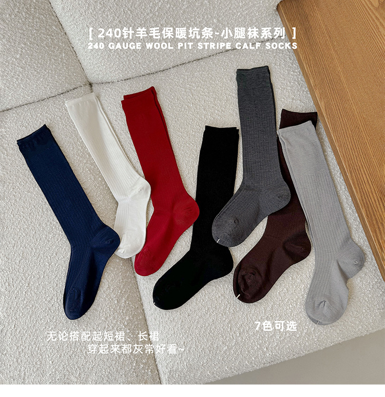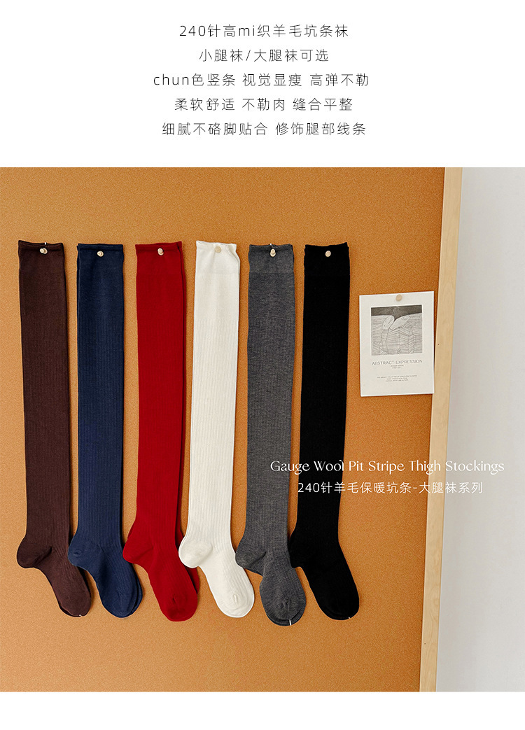 가을겨울 240니트 울 보온 핏줄 양말/허벅지 양말 심플하고 편안하며 다용도로 활용 가능한 여성용 양말, 미끄럼 방지 기능