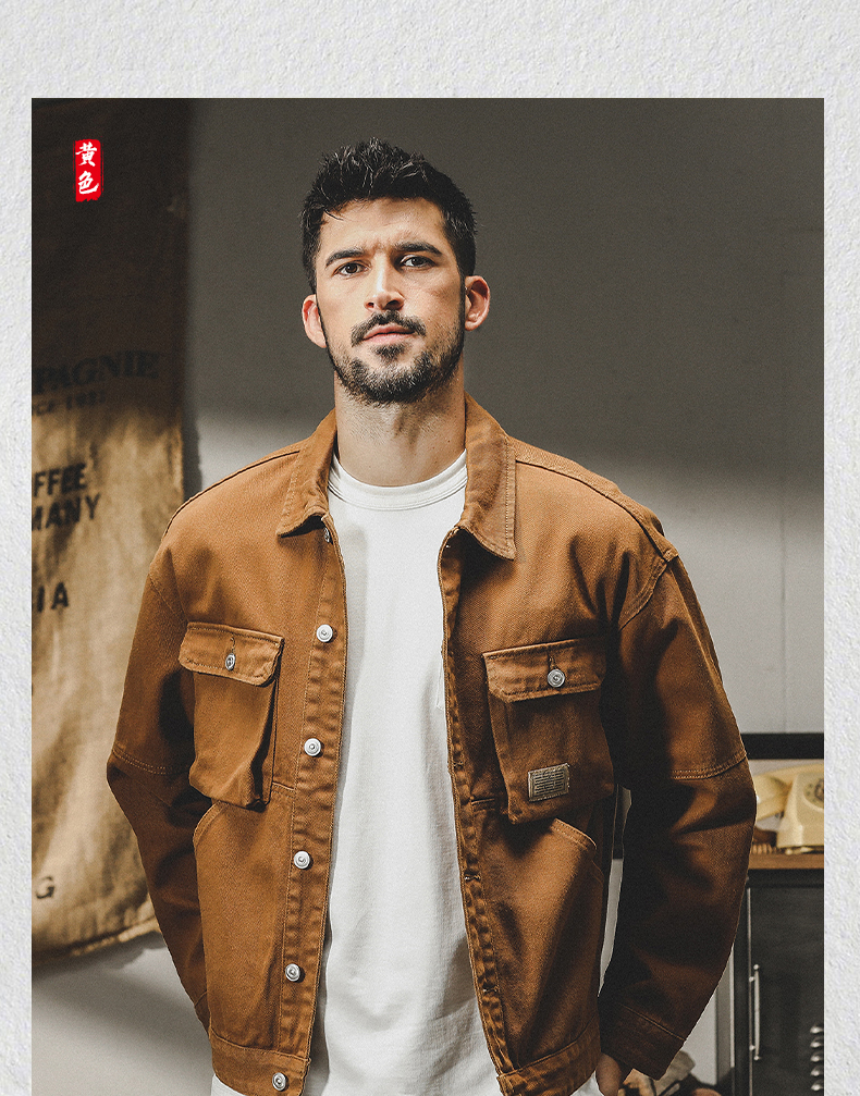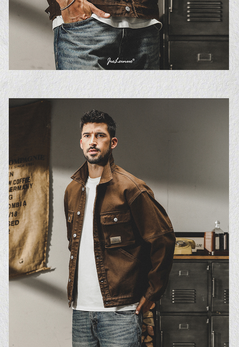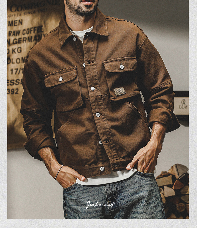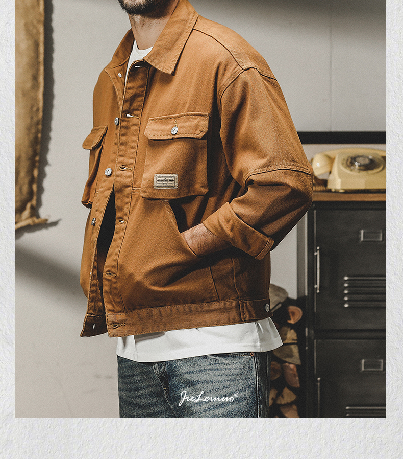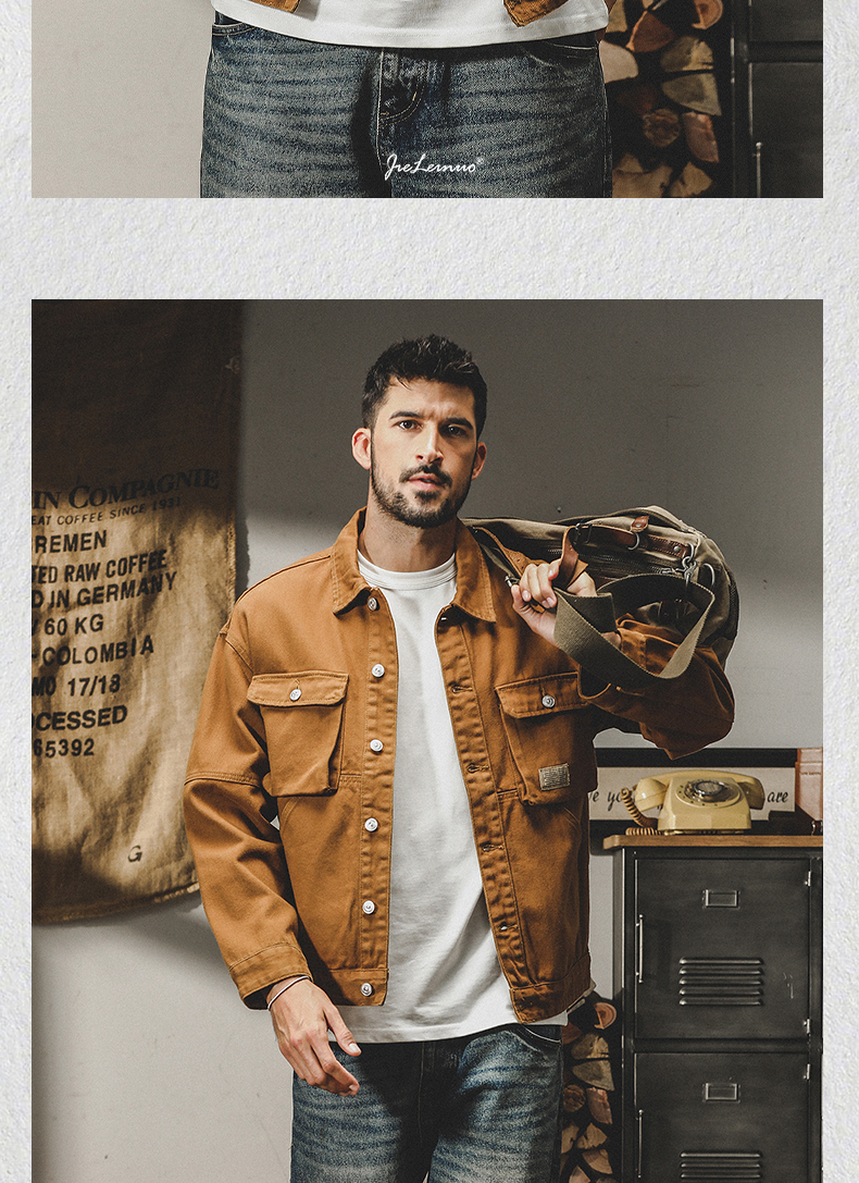미국 복고풍 데님 재킷 남자의 2024 새로운 패션 브랜드 무거운 멀티 포켓 남자의 가을 캐주얼 작업 자켓스토어 가기