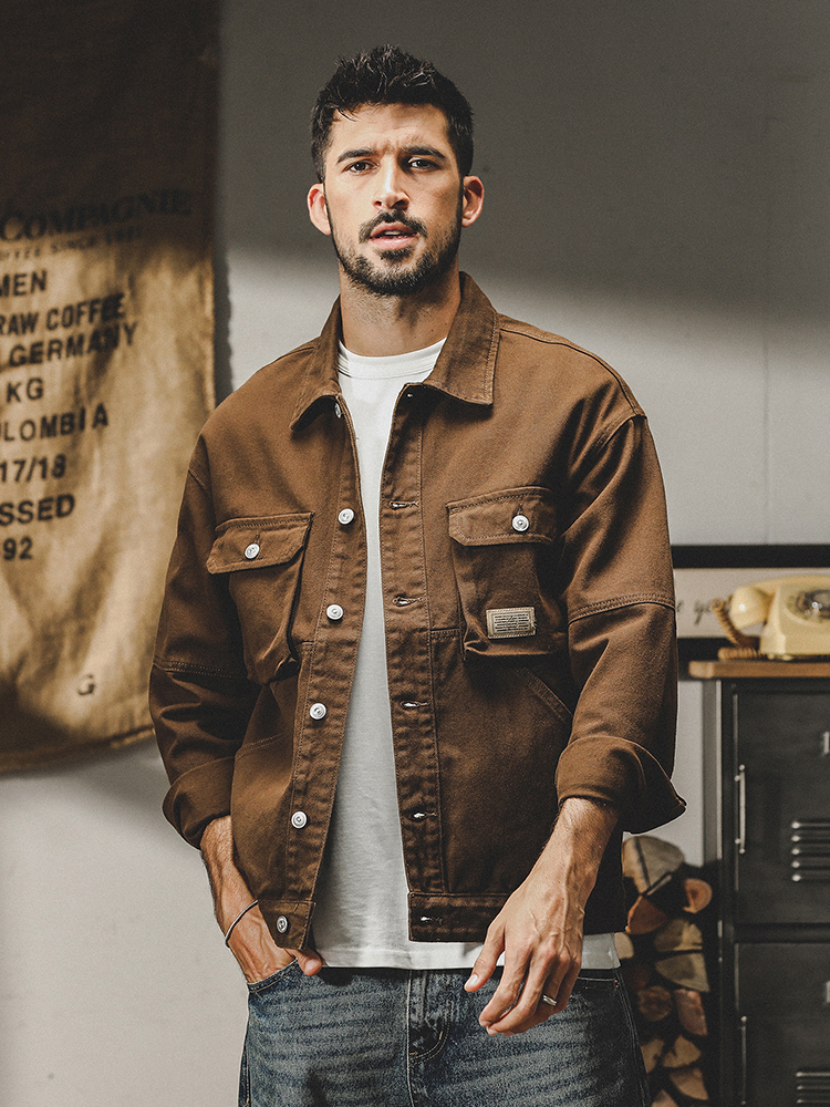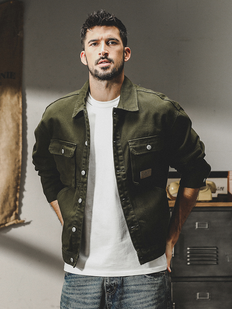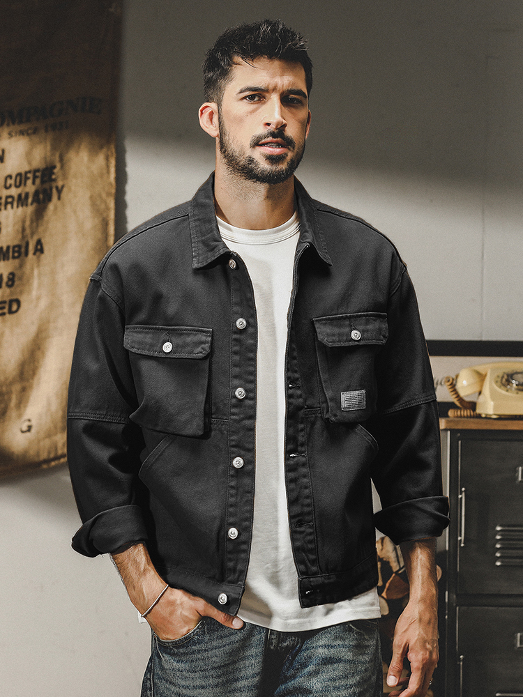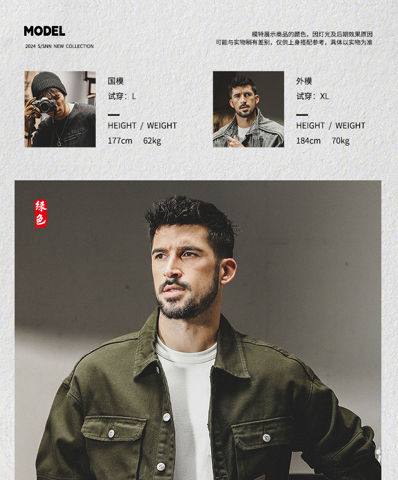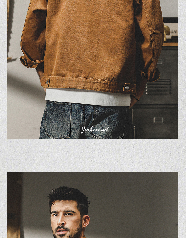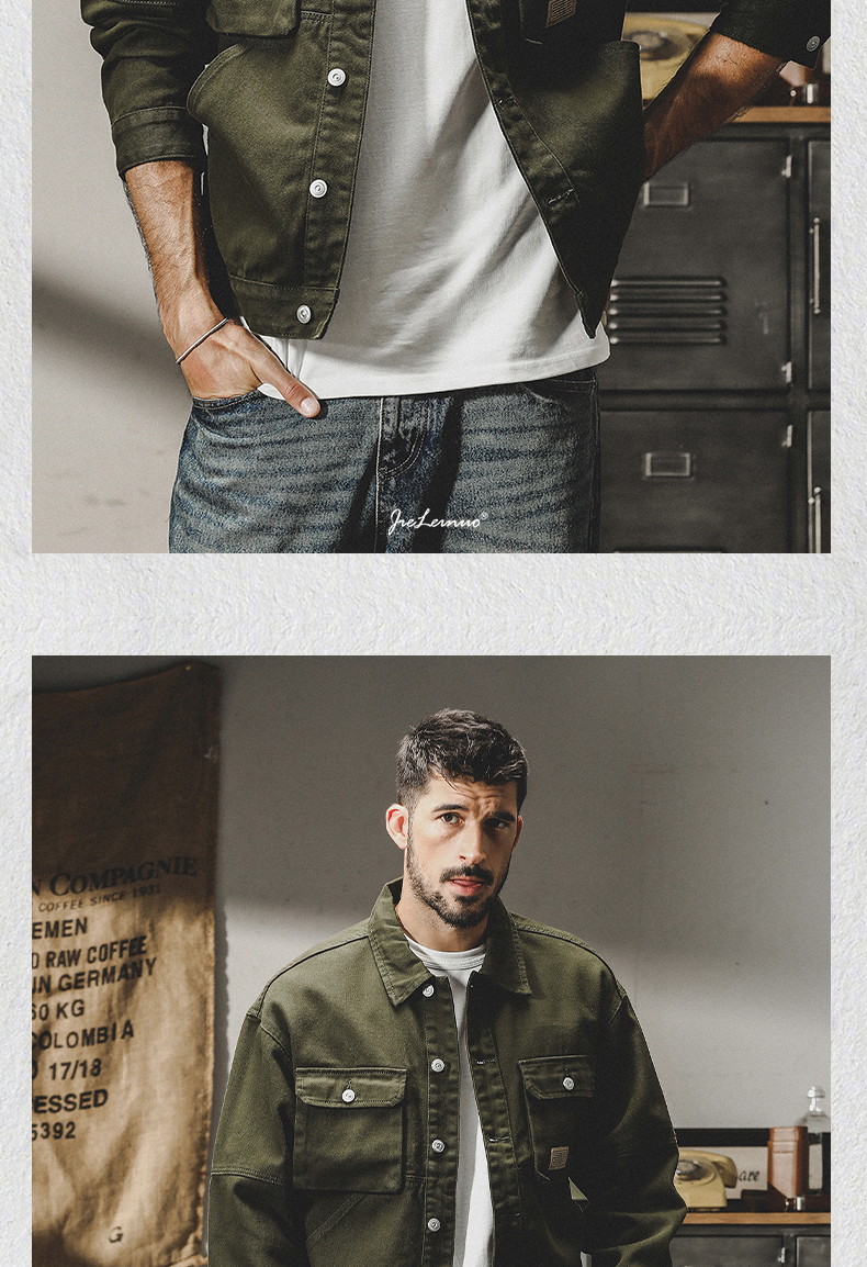 미국 복고풍 데님 재킷 남자의 2024 새로운 패션 브랜드 무거운 멀티 포켓 남자의 가을 캐주얼 작업 자켓스토어 가기
