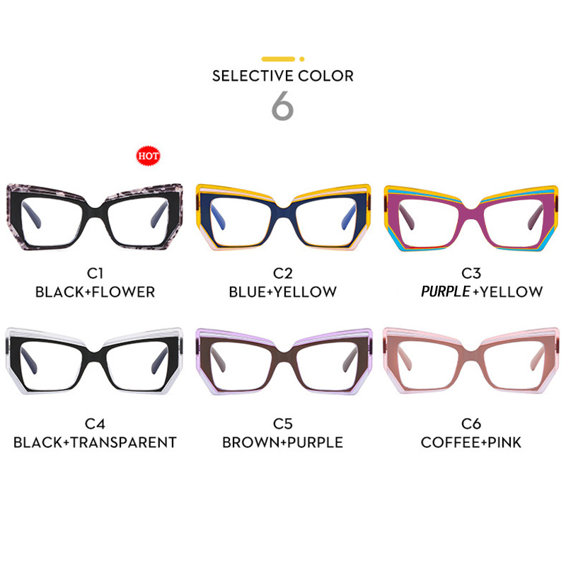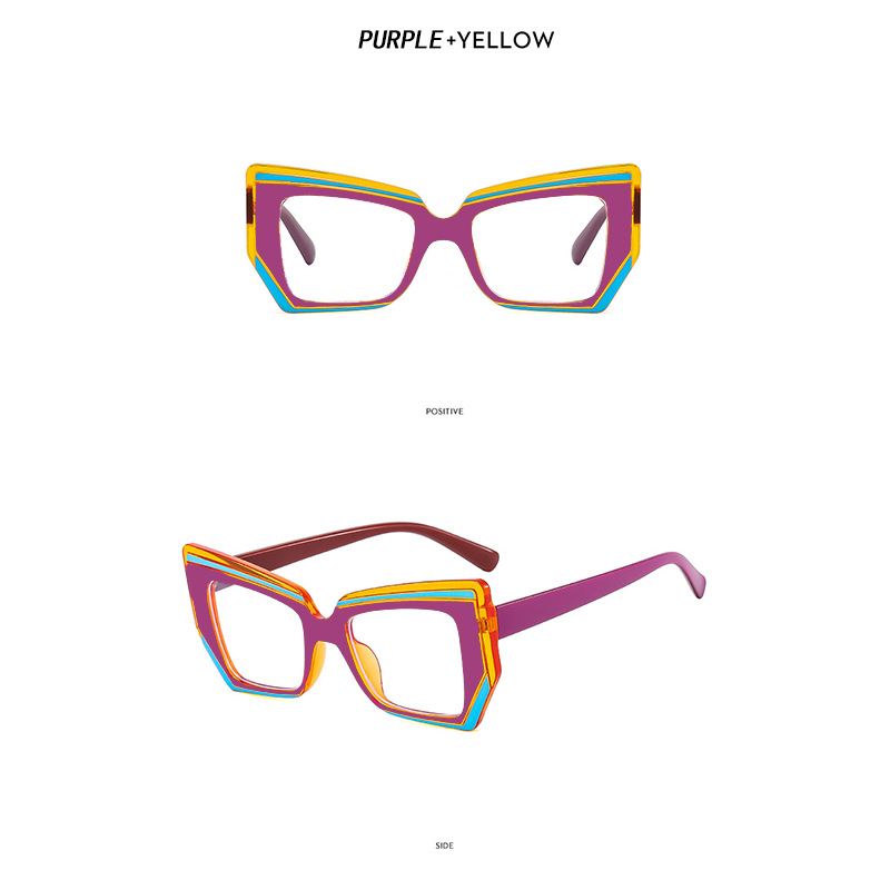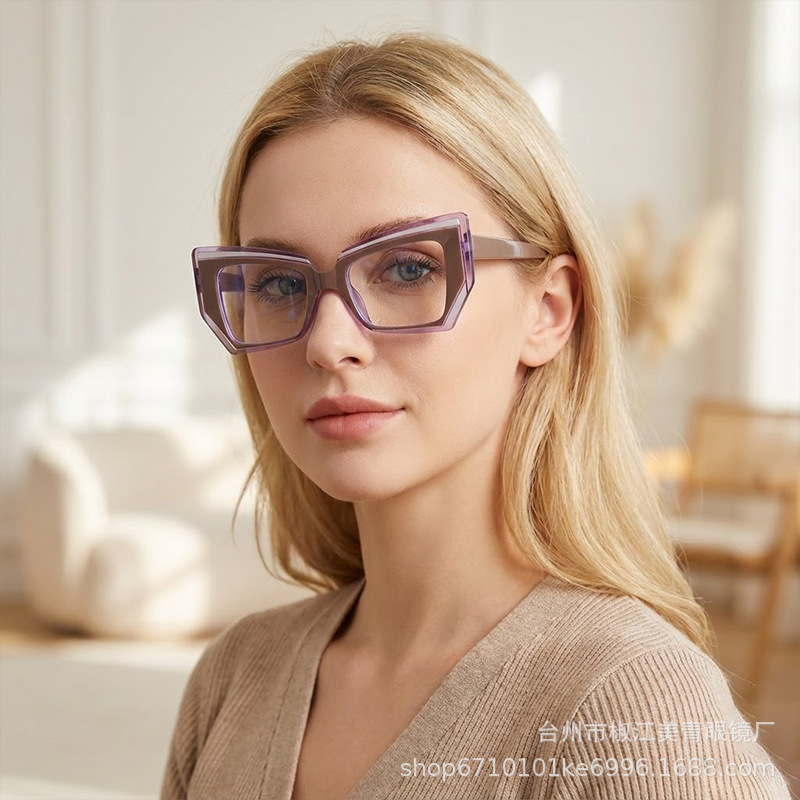 여성용 평면 안경, 고급 블루라이트 방지 안경, 유럽 및 미국 국경 간 복고풍 다용도 컬러 매칭 고양이 눈 평면 안경