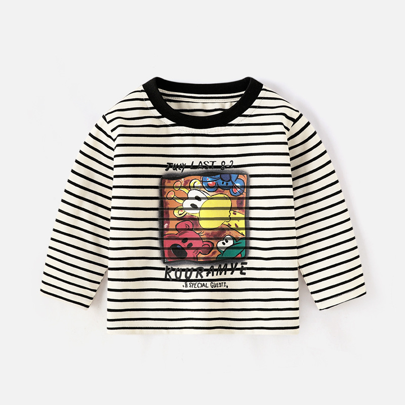 봄과 가을 어린이 줄무늬 티셔츠 한국 스타일 만화 느슨한 긴 소매 탑 따뜻한 둥근 목 가을 옷 소년베이스 셔츠