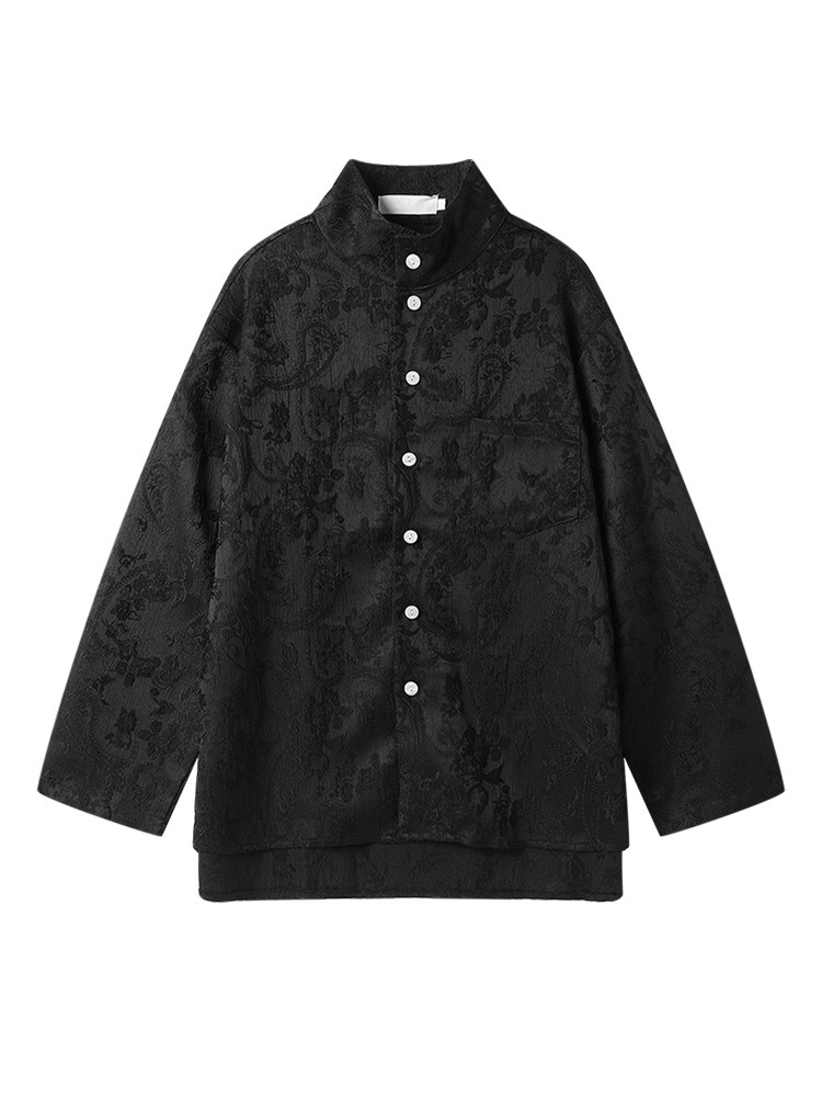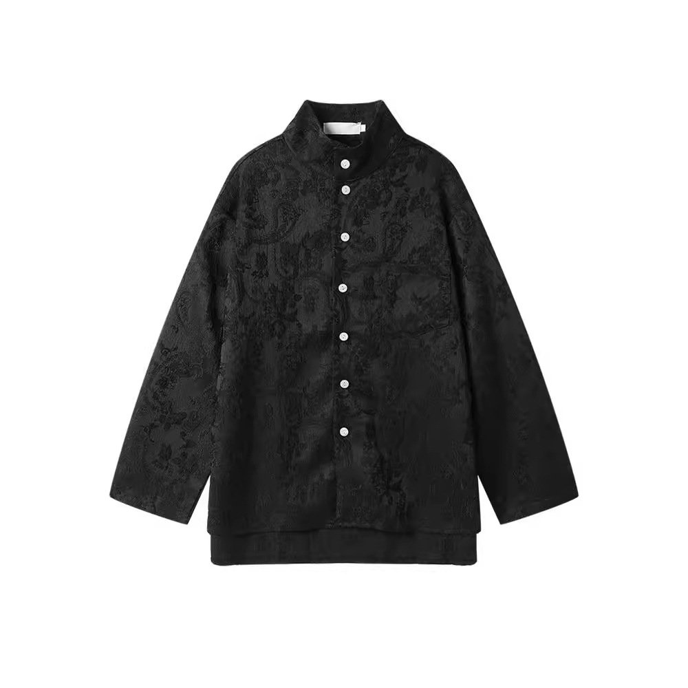 새로운 중국 스타일 자카드 칼라 셔츠 남자의 봄과 가을 느슨한 캐주얼 커플 디자인 센스 국가 패션 중산 탕 원피스 셔츠스토어 가기