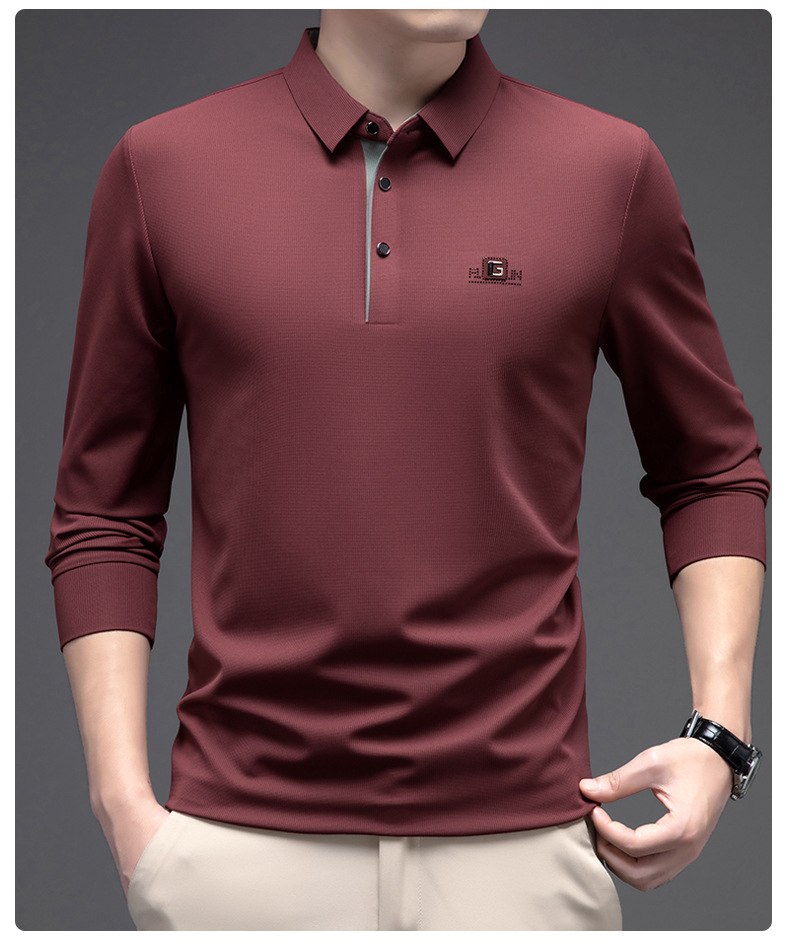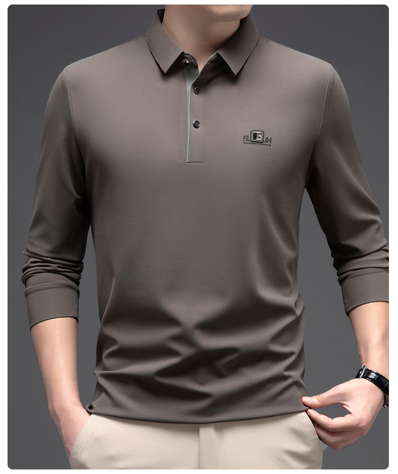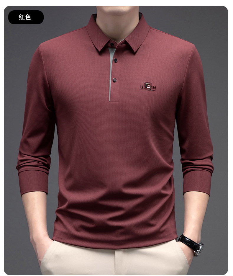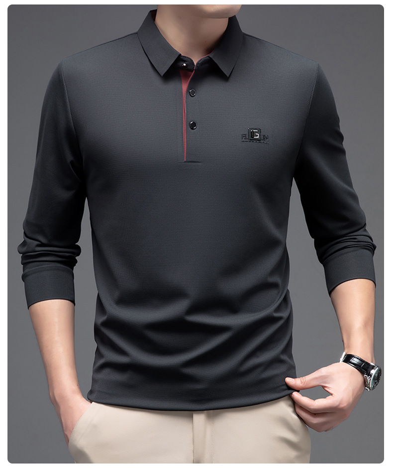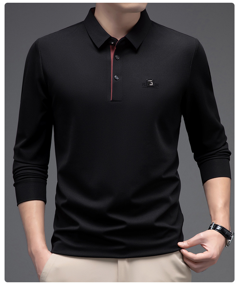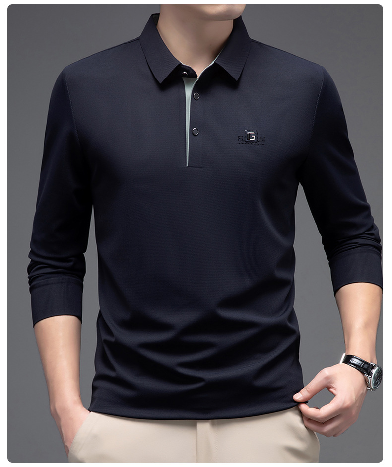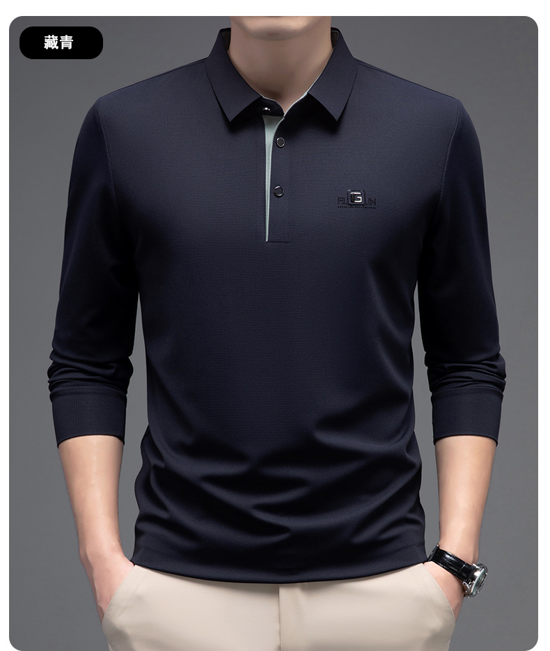 남성 폴로 셔츠 긴팔 옷깃 남성 티셔츠 가을, 겨울 새로운 단순 라이트 비즈니스 솔리드 컬러 폴로 셔츠 남성 티셔츠스토어 가기