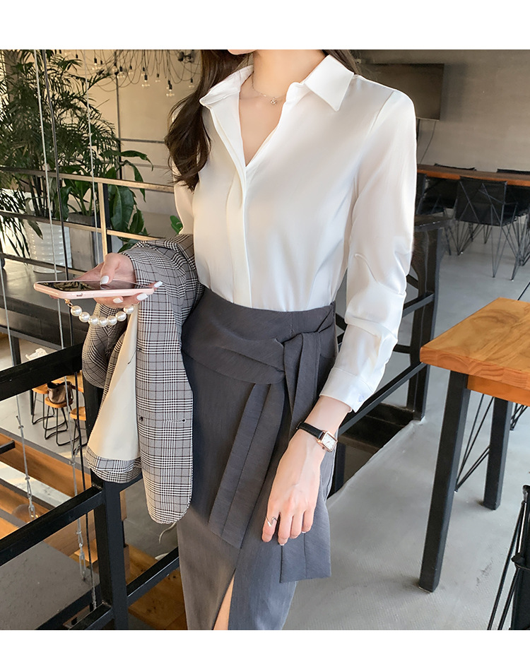 가을 2024 새로운 한국 스타일 올 매치 디자인 센스 긴 소매 캐주얼 셔츠 여성의 가을스토어 가기