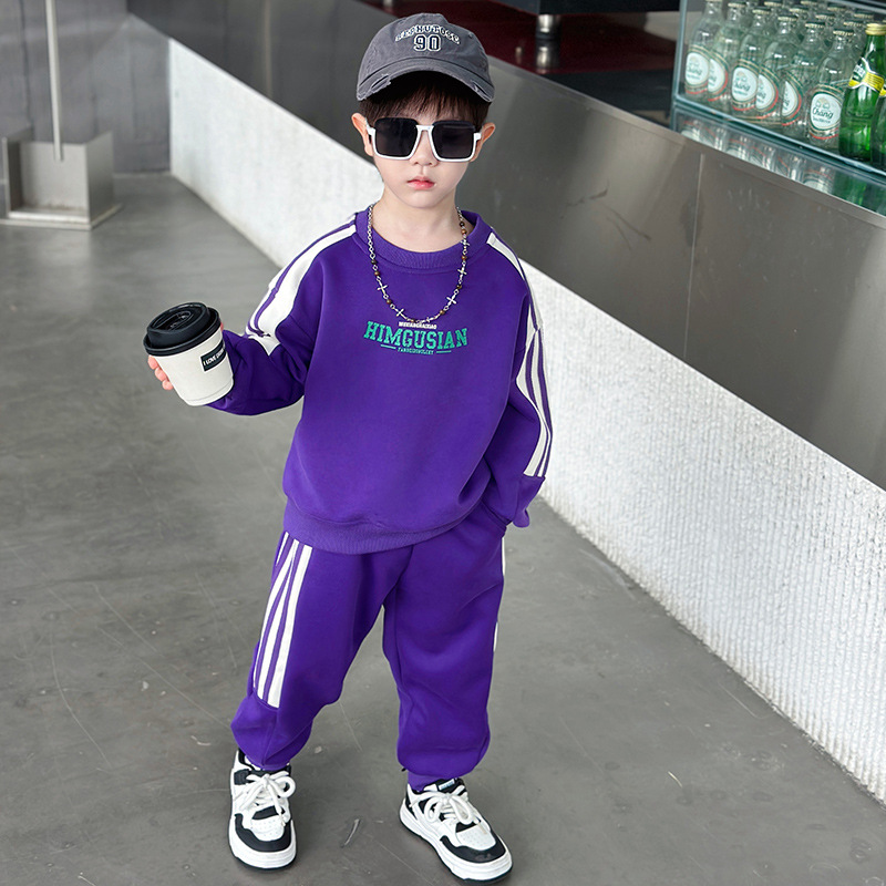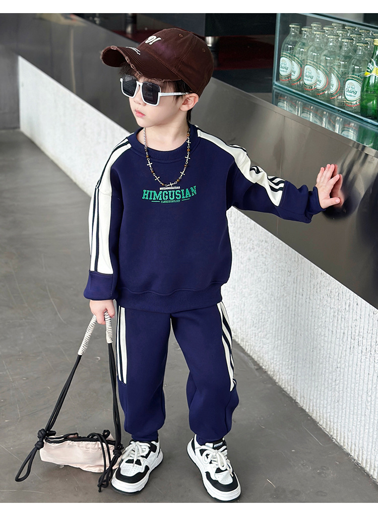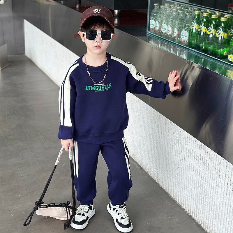 남아용 스웨트셔츠 세트 2025 봄 가을 신상 한국 스타일 멋진 스포츠 투피스 세트 유아 및 어린이용 수출 아동복 트렌드