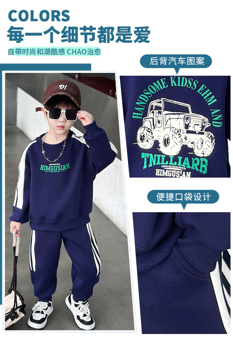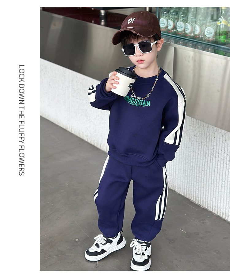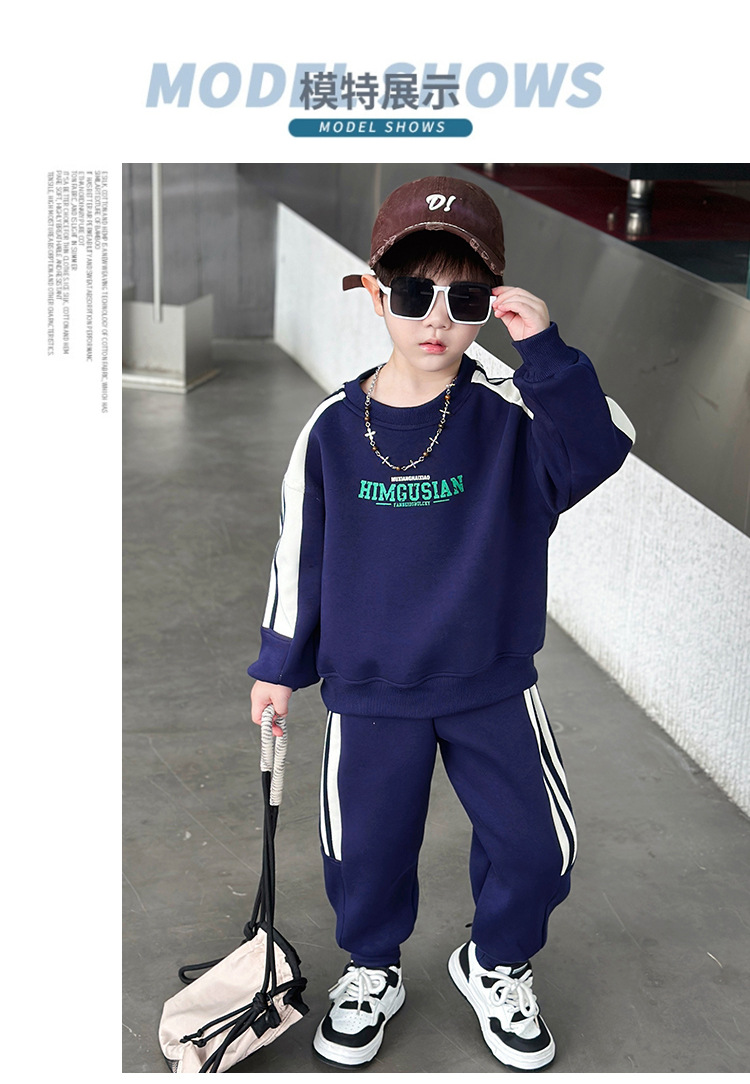 남아용 스웨트셔츠 세트 2025 봄 가을 신상 한국 스타일 멋진 스포츠 투피스 세트 유아 및 어린이용 수출 아동복 트렌드스토어 가기