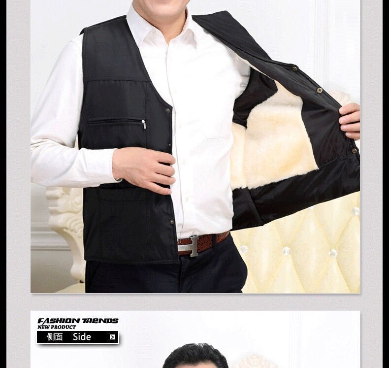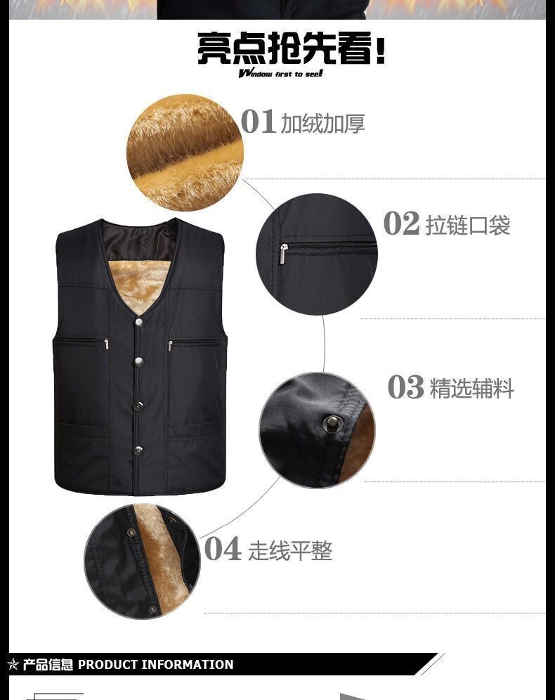 헤어 라이너 아빠 플러스 사이즈 중년 남성 기모 조끼 중년 및 노인 남성 조끼 두꺼운 면 조끼