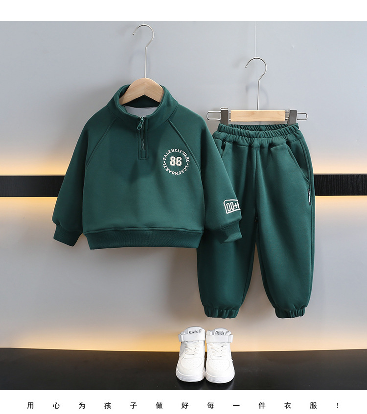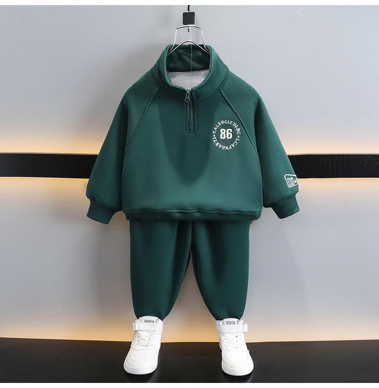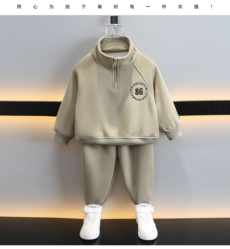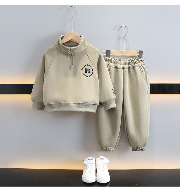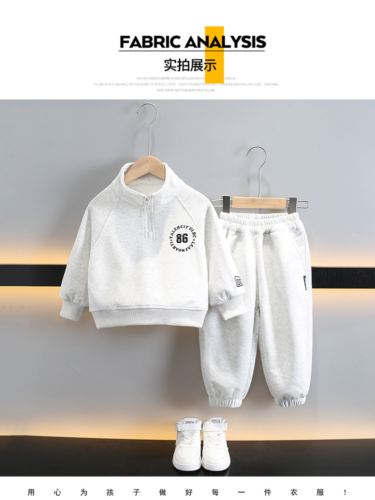 어린이 봄과 가을 대외 무역 아동복 2024 가을 새로운 한국 잘 생긴 남자 아기 반 지퍼 스웨터 투피스 세트스토어 가기