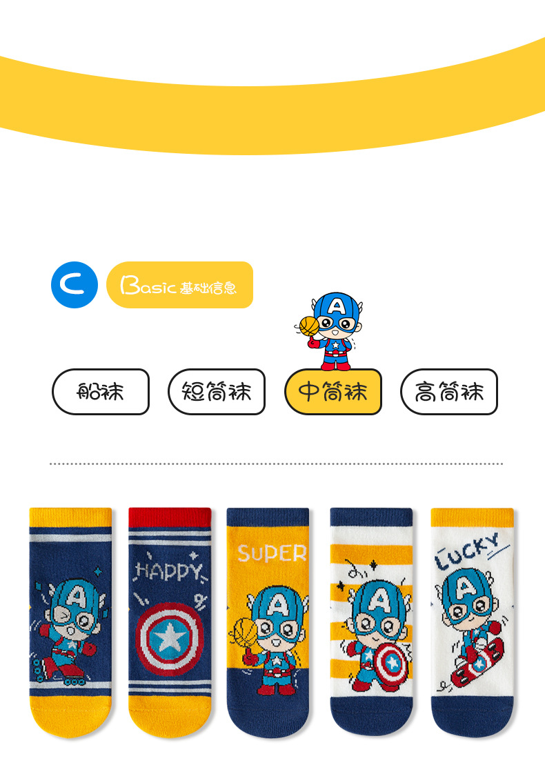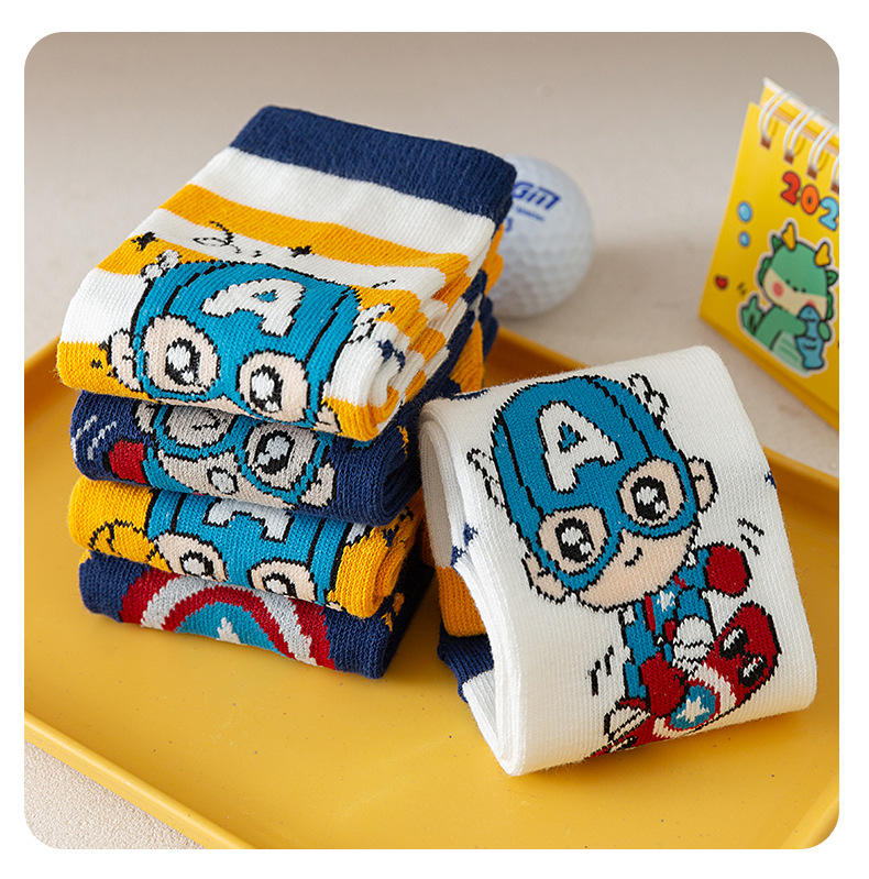 2024秋季新品卡通男孩中筒袜子透气棉袜潮酷美国队宝宝儿童袜批发