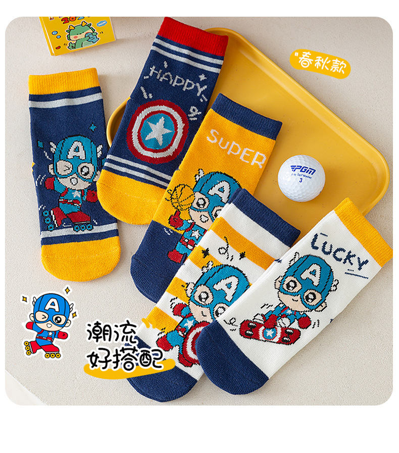 2024秋季新品卡通男孩中筒袜子透气棉袜潮酷美国队宝宝儿童袜批发스토어 가기