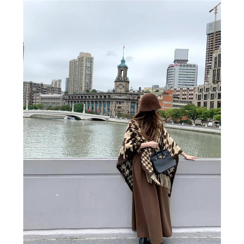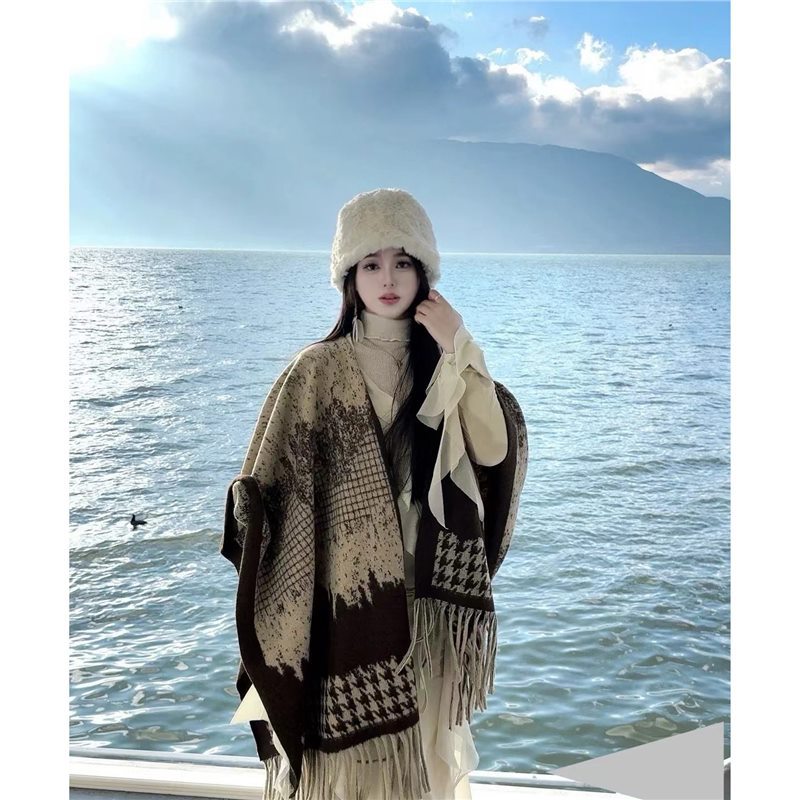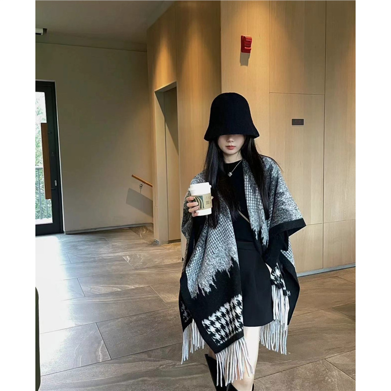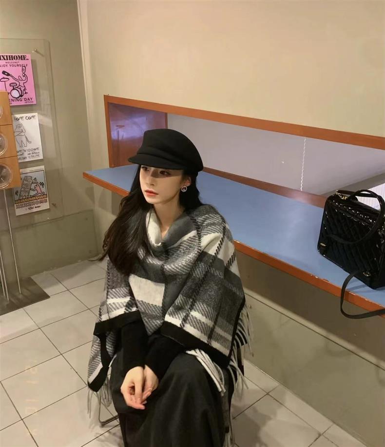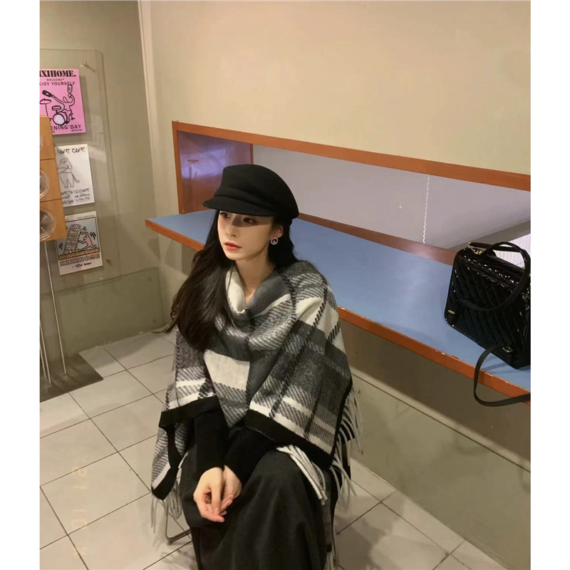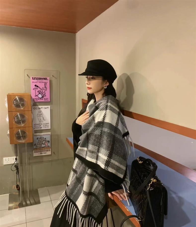 빈티지 블랙 정글 스카프 여성의 봄과 가을 하이 엔드 2024 새로운 두꺼운 캐시미어 격자 목도리 케이프 외부스토어 가기