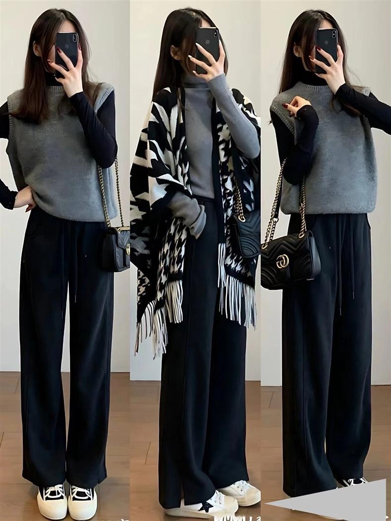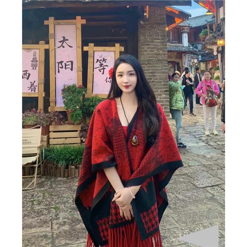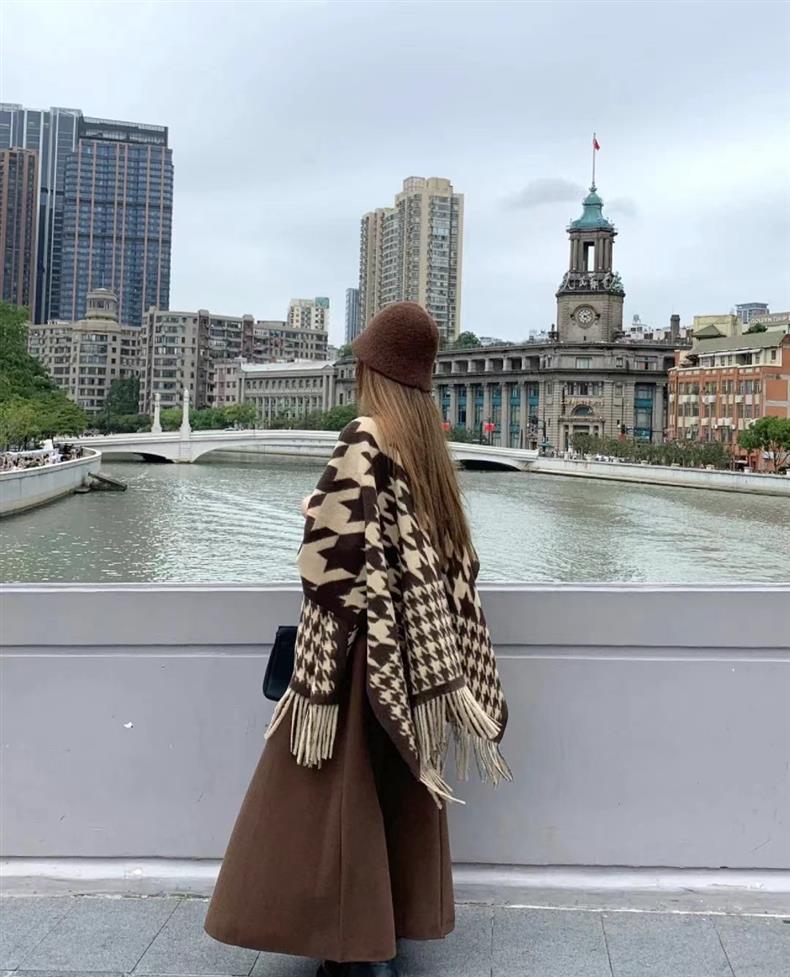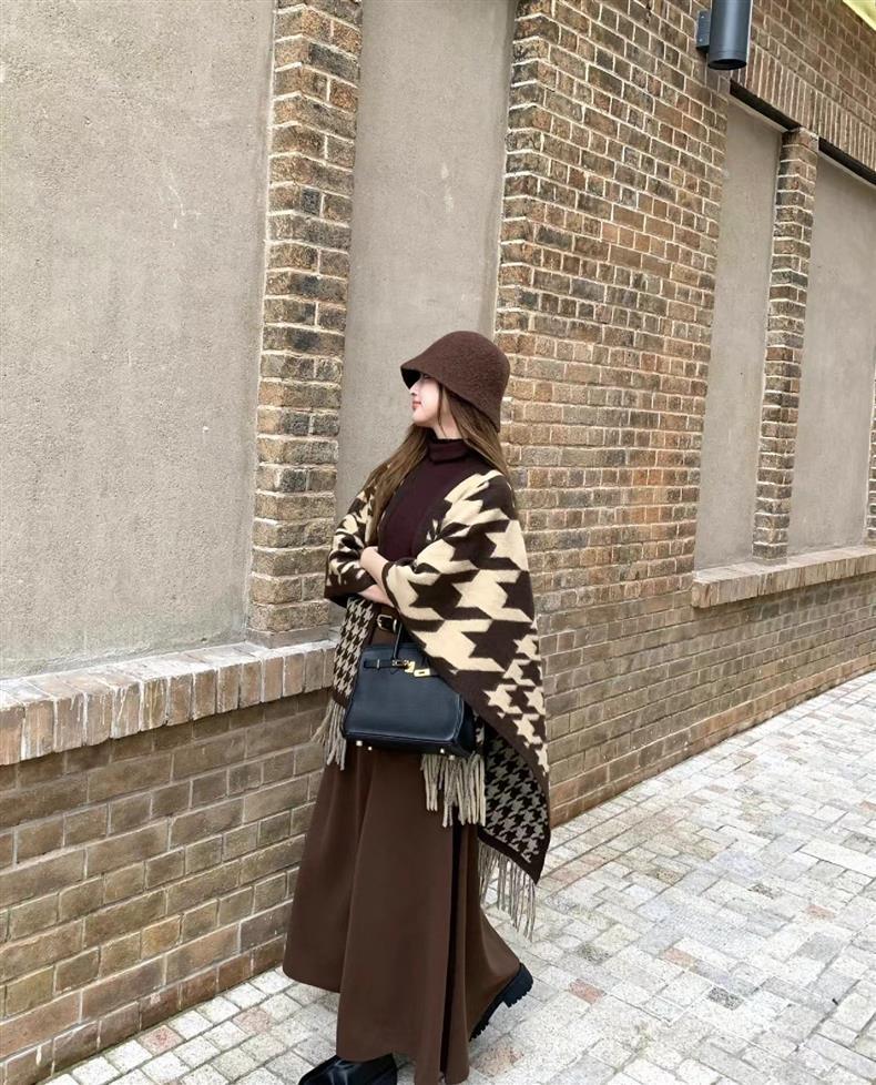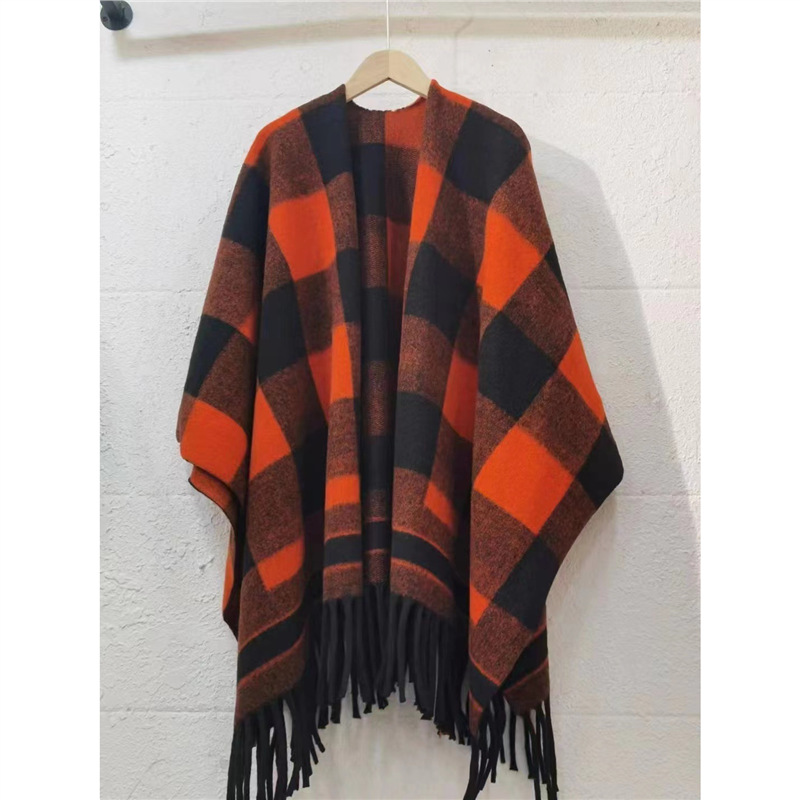 빈티지 블랙 정글 스카프 여성의 봄과 가을 하이 엔드 2024 새로운 두꺼운 캐시미어 격자 목도리 케이프 외부스토어 가기