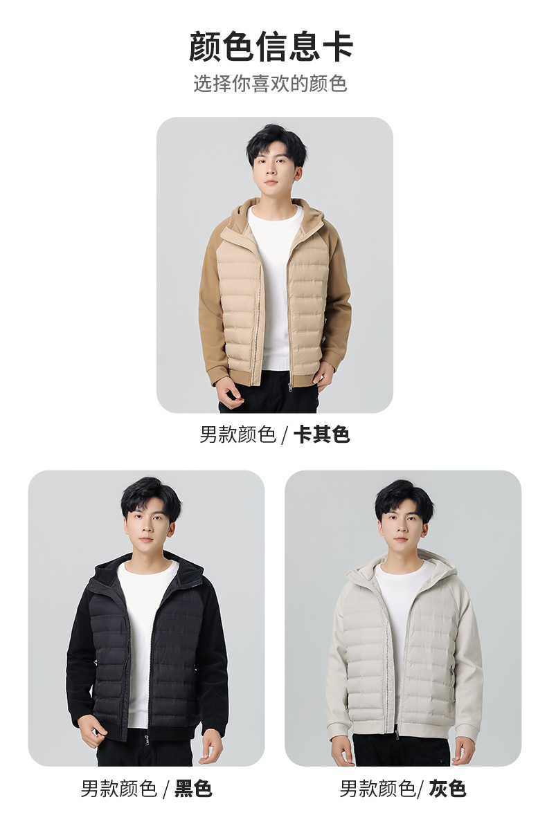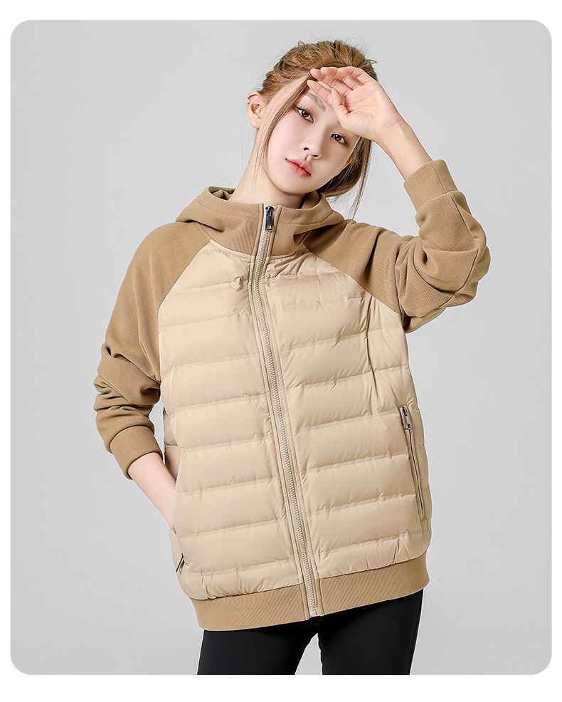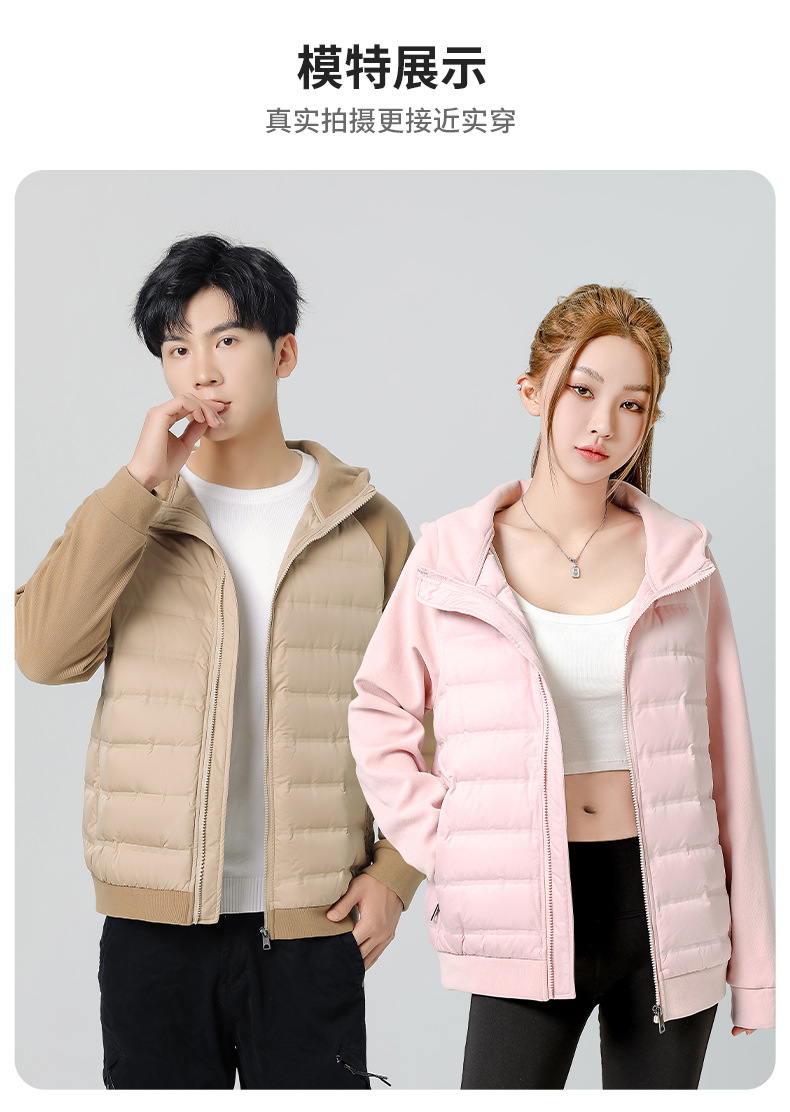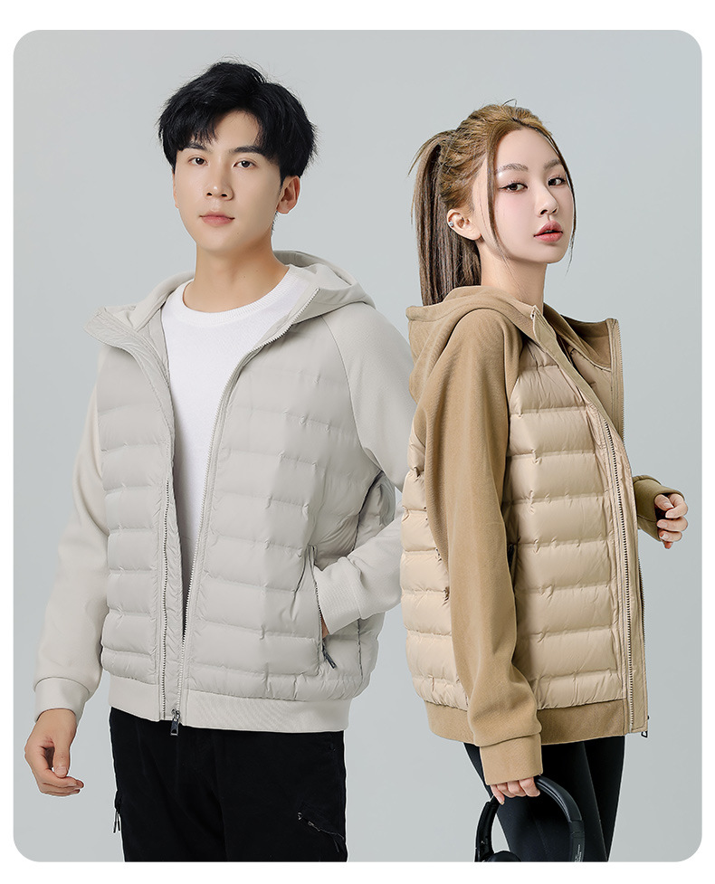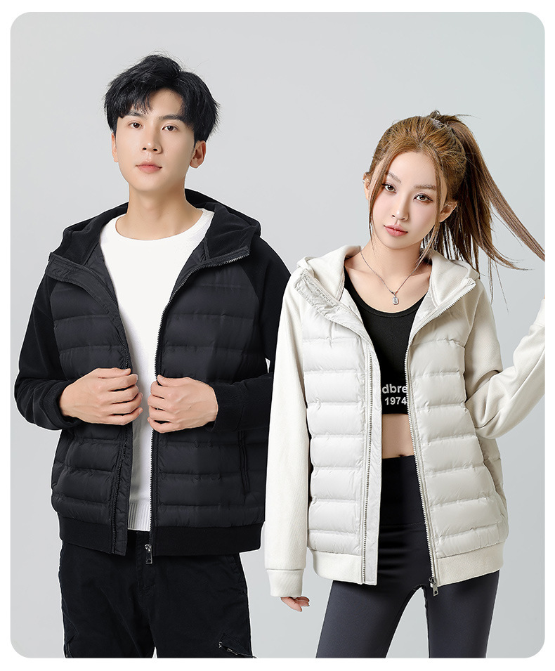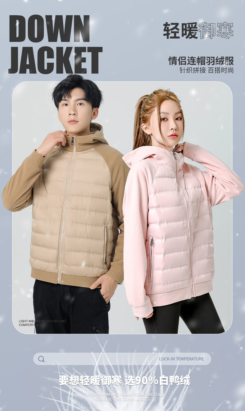남성과 여성을위한 다운 재킷 가을 및 겨울 새로운 90 화이트 덕 다운 라이트 니트 스포츠 대비 컬러 스티칭 커플의 후드 재킷