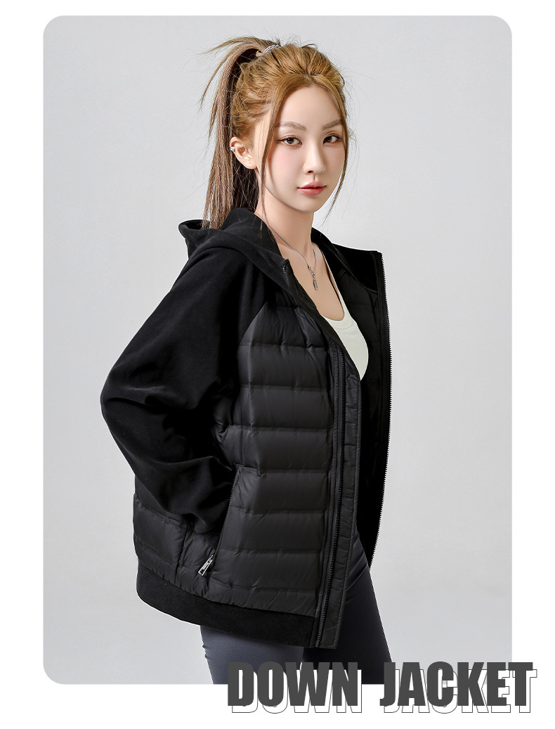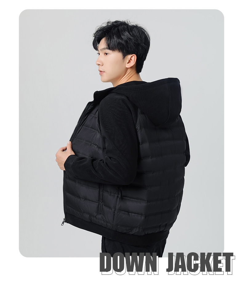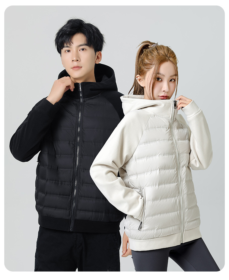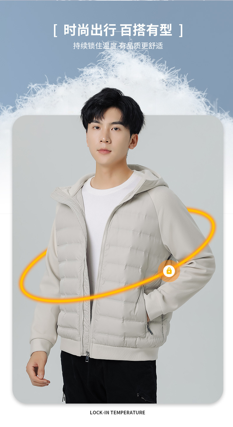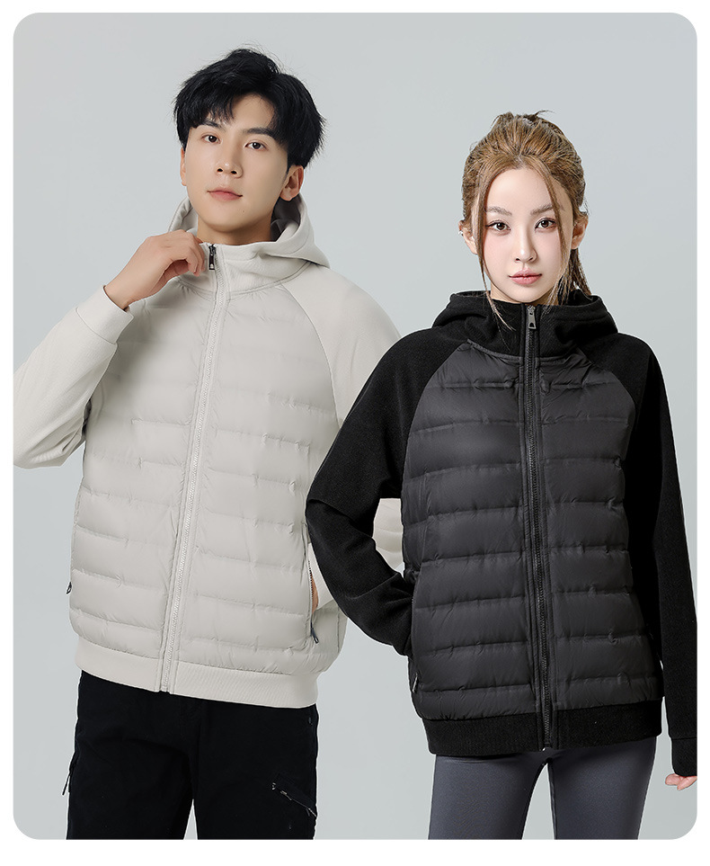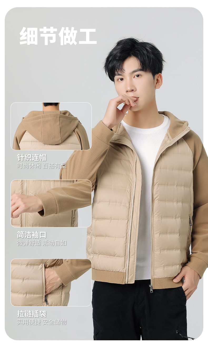 남성과 여성을위한 다운 재킷 가을 및 겨울 새로운 90 화이트 덕 다운 라이트 니트 스포츠 대비 컬러 스티칭 커플의 후드 재킷