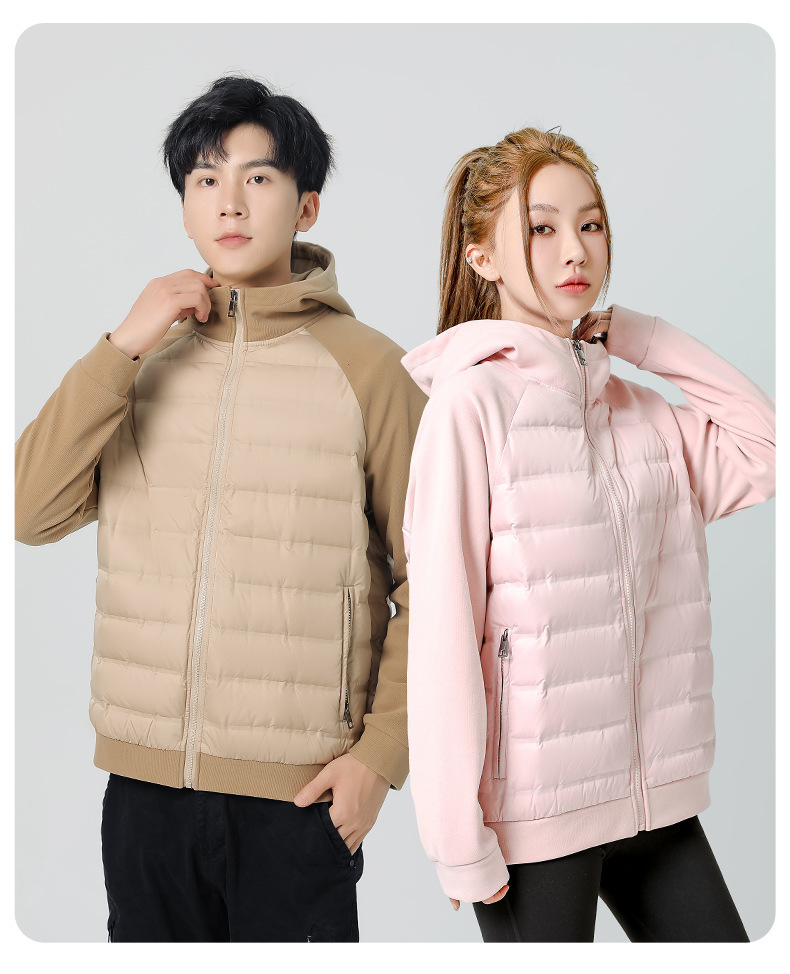 남성과 여성을위한 다운 재킷 가을 및 겨울 새로운 90 화이트 덕 다운 라이트 니트 스포츠 대비 컬러 스티칭 커플의 후드 재킷스토어 가기