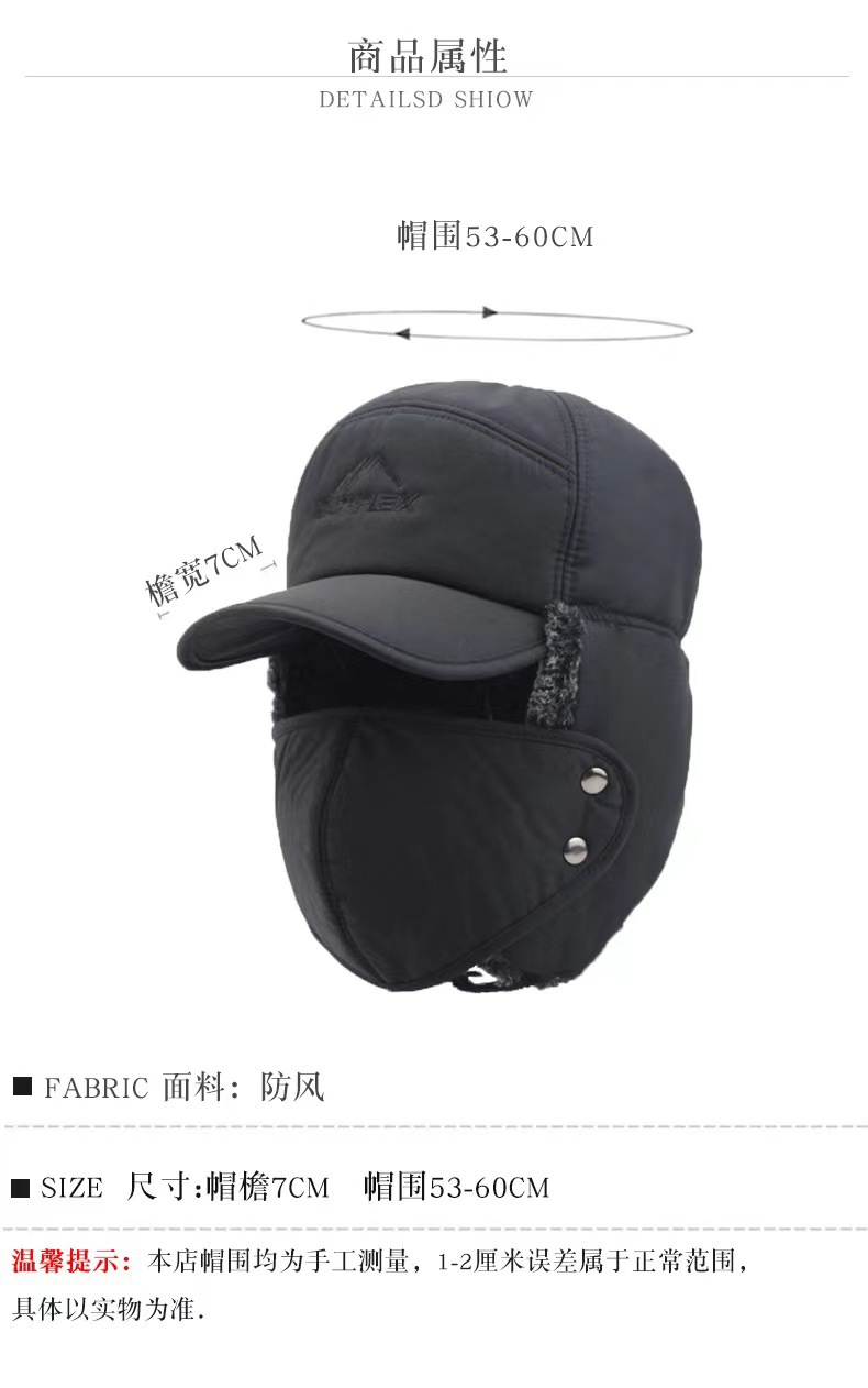 겨울 남자 오리 혀 모자 레이 펑 모자 기모 두꺼운 방풍 따뜻한 얼굴 마스크 이동식 타고스토어 가기