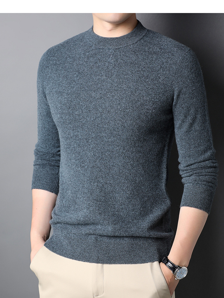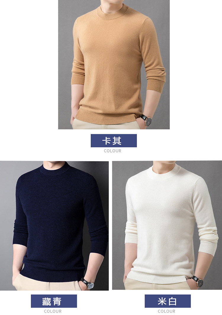 2024 가을과 겨울 새로운 라운드 넥 솔리드 컬러 100 스웨터 남성 패션 캐주얼 긴 소매베이스 스웨터 탑