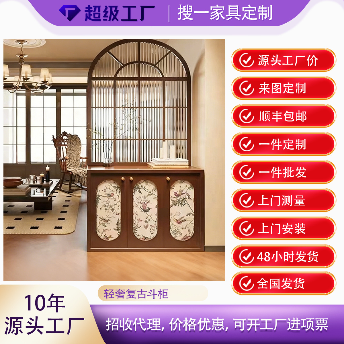와우! 맞춤형 프랑스풍 현관 스크린 캐비닛, 거실 원목 가정용 현관 유리 페인팅 럭셔리 레트로 서랍장스토어 가기