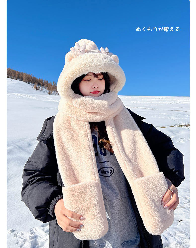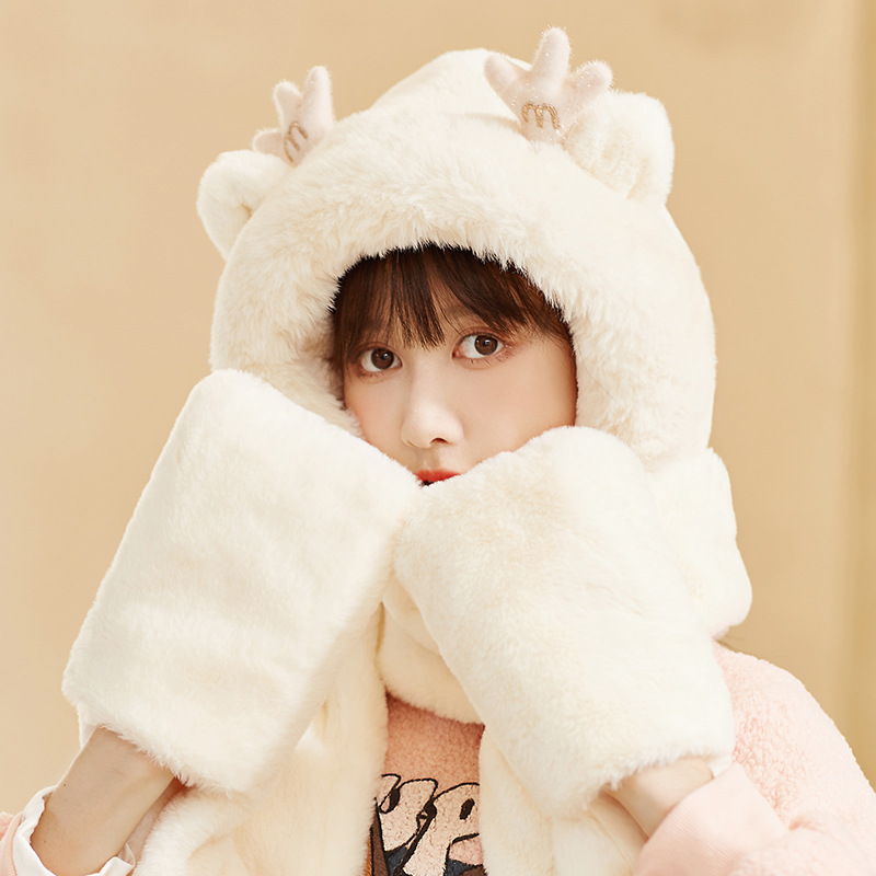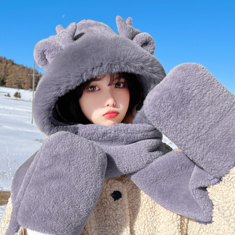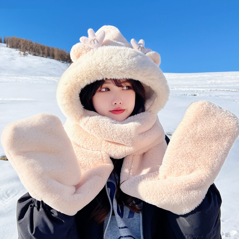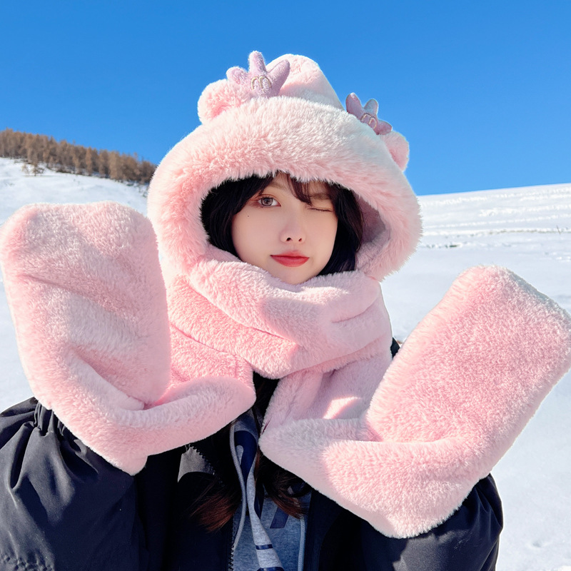 새로운 Longjiao 모자 따뜻한 스카프 원피스 후드 여성용 겨울 장갑 3 피스 세트 유행 사이클링 냉장 스카프