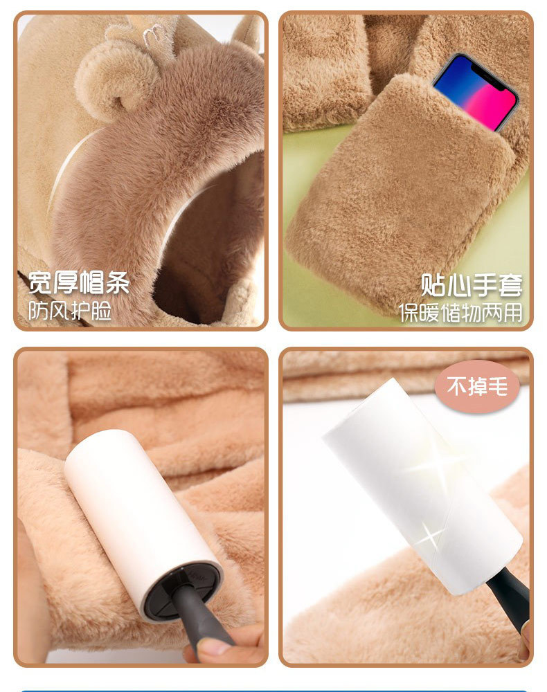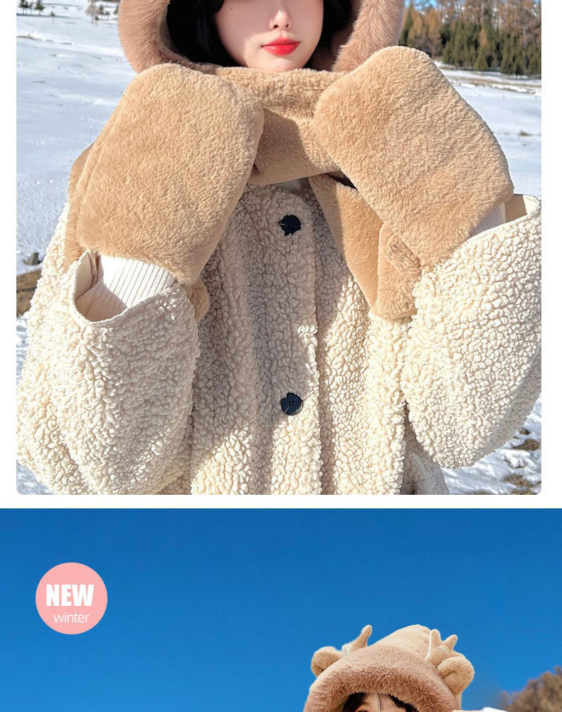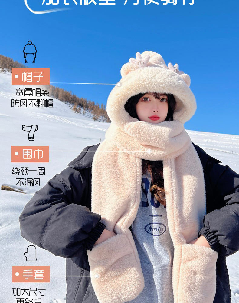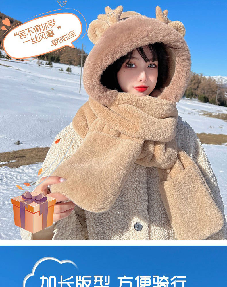 새로운 Longjiao 모자 따뜻한 스카프 원피스 후드 여성용 겨울 장갑 3 피스 세트 유행 사이클링 냉장 스카프스토어 가기