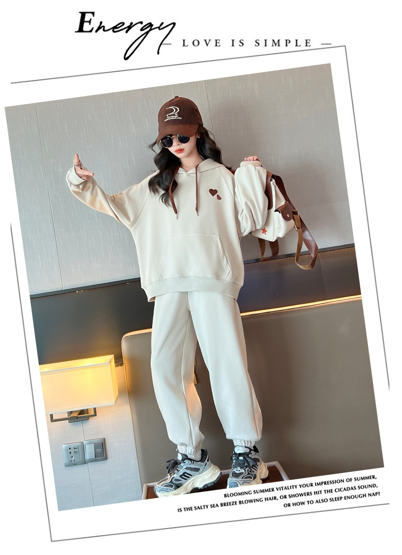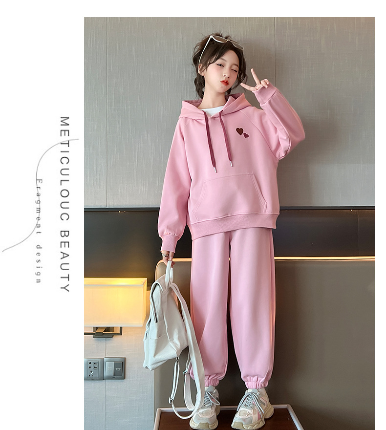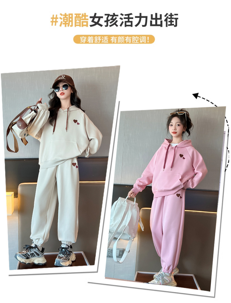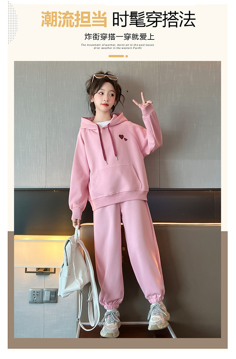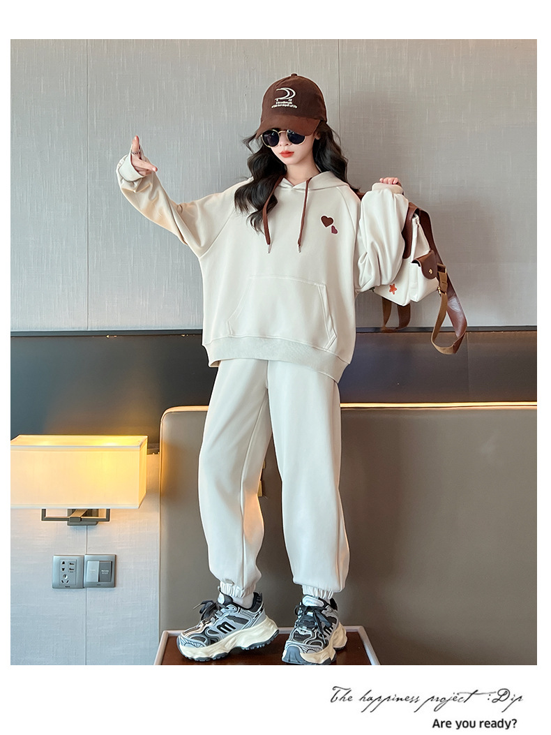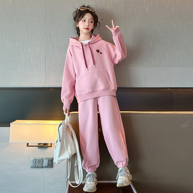 소녀 가을 착용 세트 2024 새로운 한국 스타일 소녀 온라인 인기 외국식 후드 스웨터 어린이 봄과 가을 스포츠 옷스토어 가기