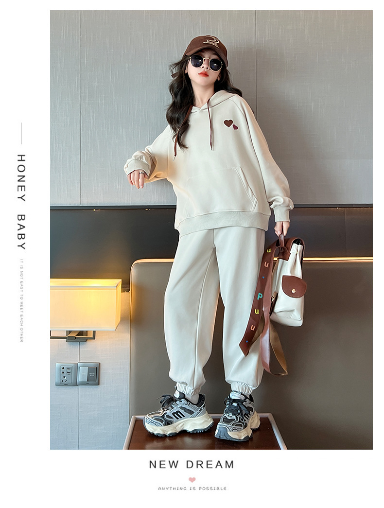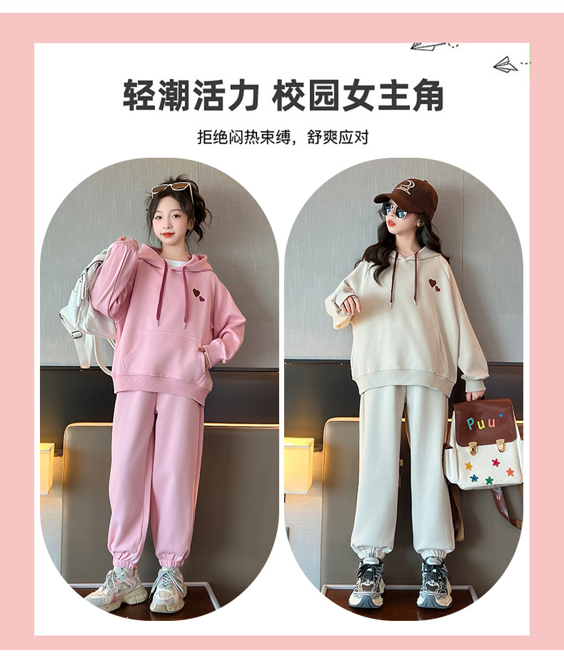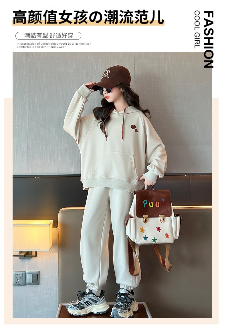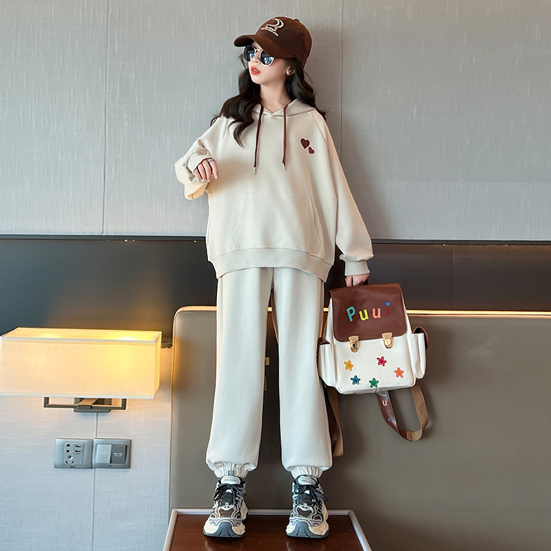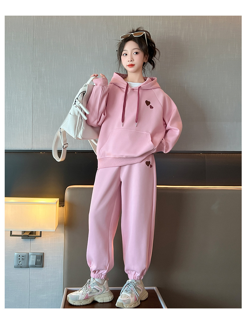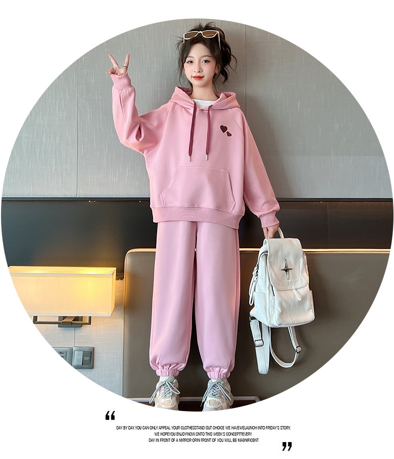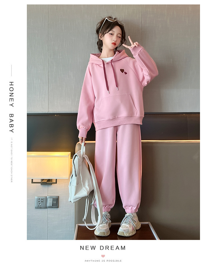 소녀 가을 착용 세트 2024 새로운 한국 스타일 소녀 온라인 인기 외국식 후드 스웨터 어린이 봄과 가을 스포츠 옷스토어 가기