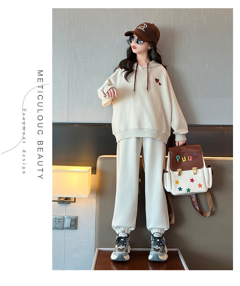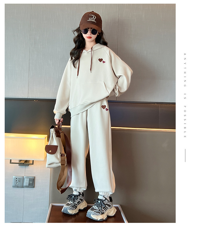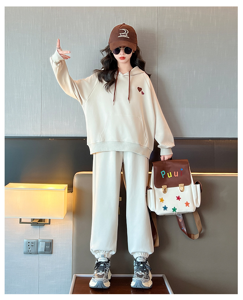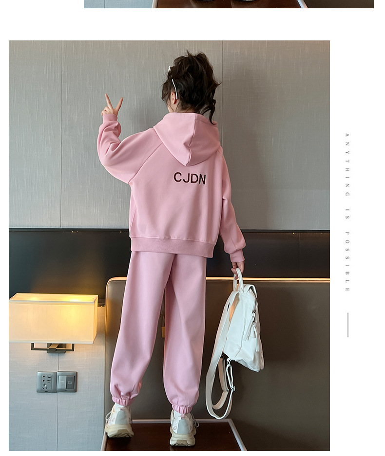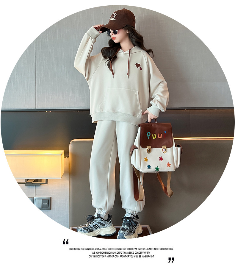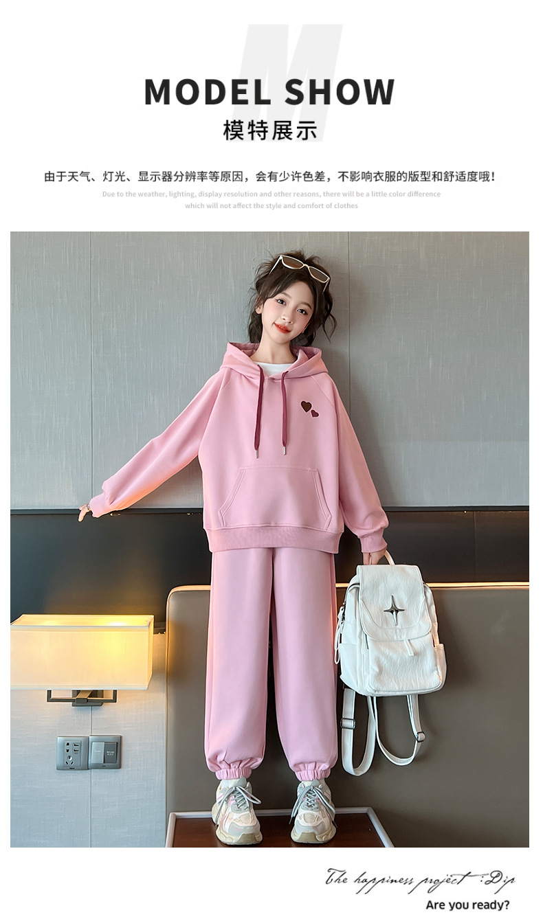 소녀 가을 착용 세트 2024 새로운 한국 스타일 소녀 온라인 인기 외국식 후드 스웨터 어린이 봄과 가을 스포츠 옷스토어 가기