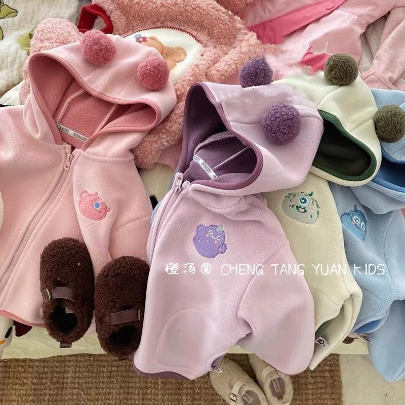 어린이 의류 가을과 겨울 코트 따뜻한 두꺼운 소년과 소녀 아기 귀여운 만화 후드 카디건 플러시 옷 도매스토어 가기