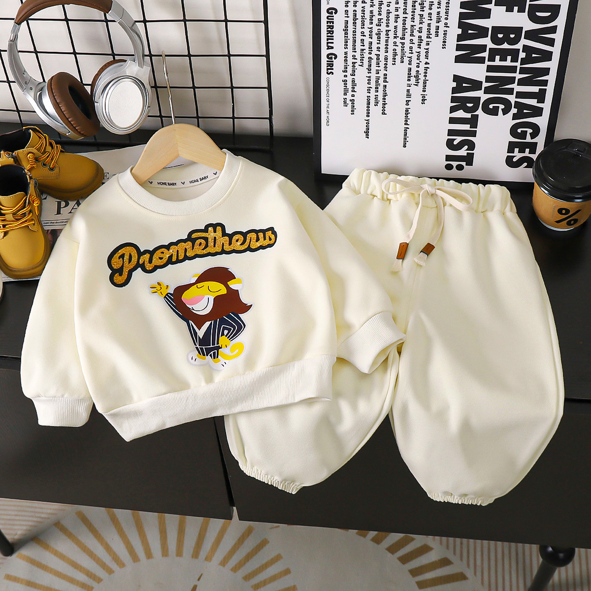 공장 가을 새로운 어린이 스웨터 세트 만화 서양식 아우터 스포츠 캐주얼 소년 스웨터 2 피스 세트스토어 가기