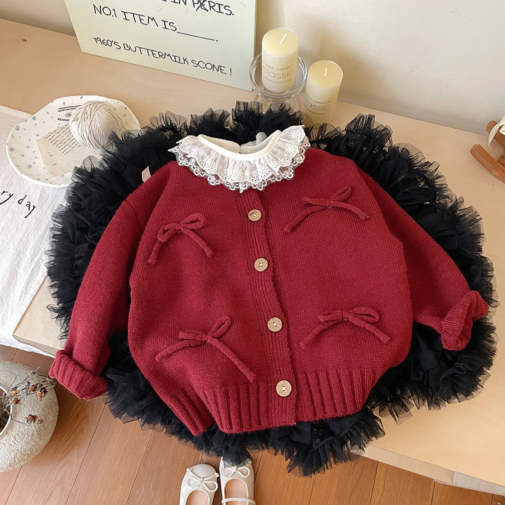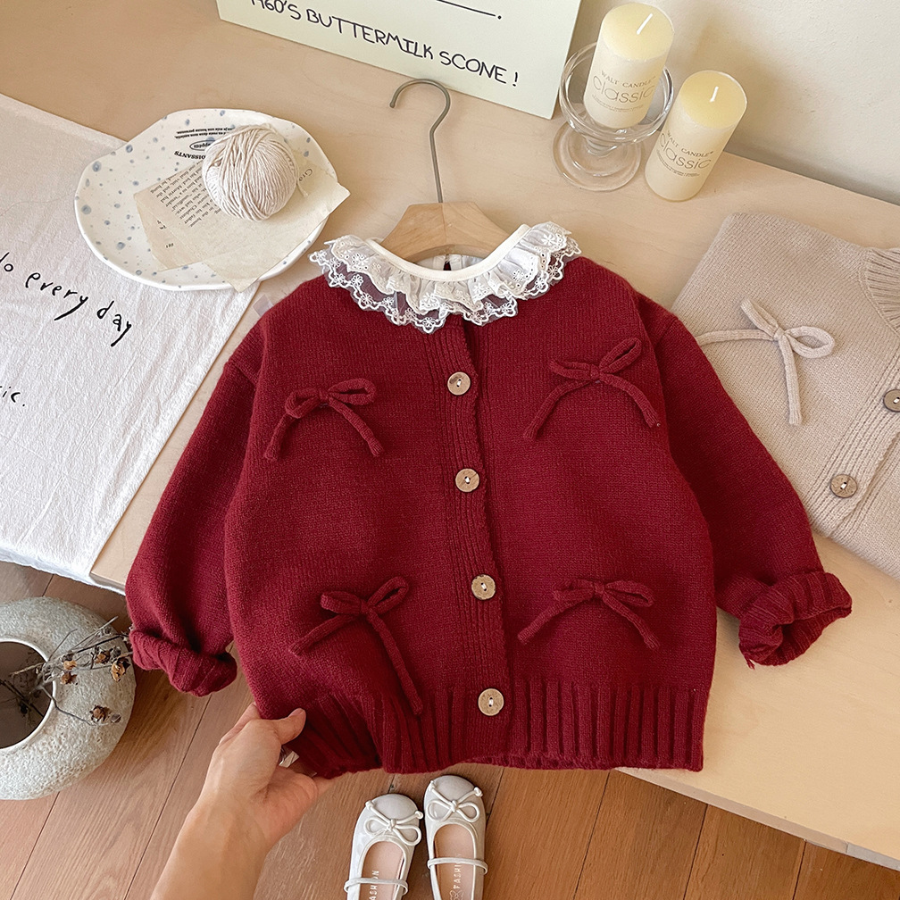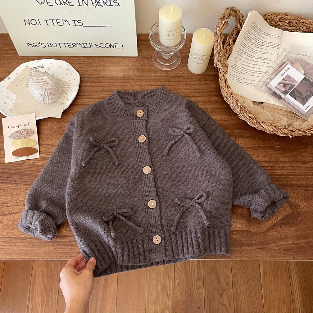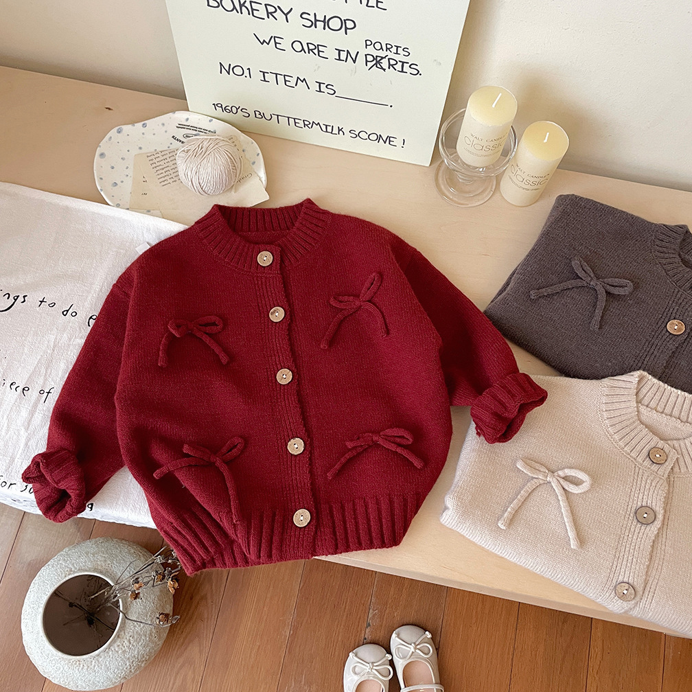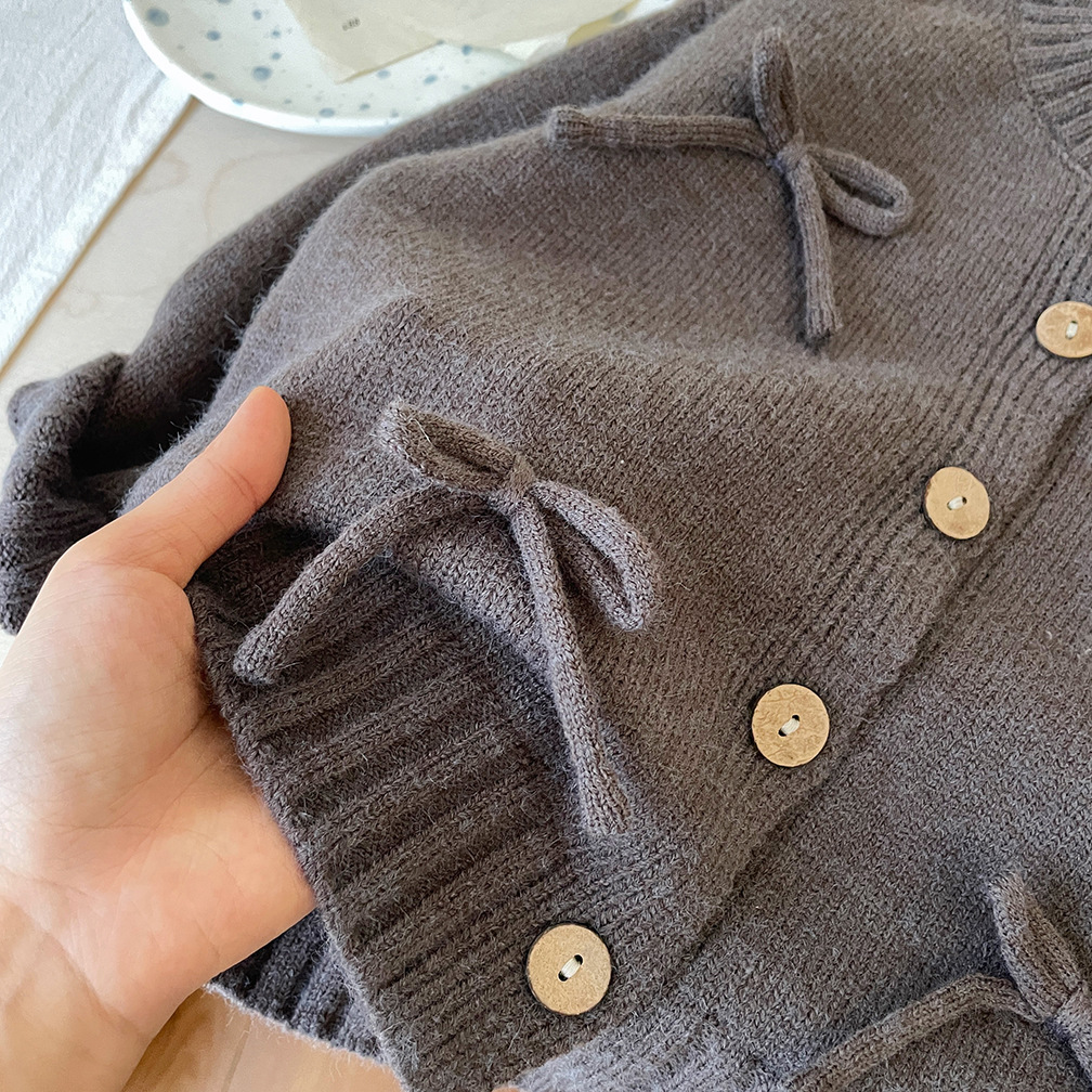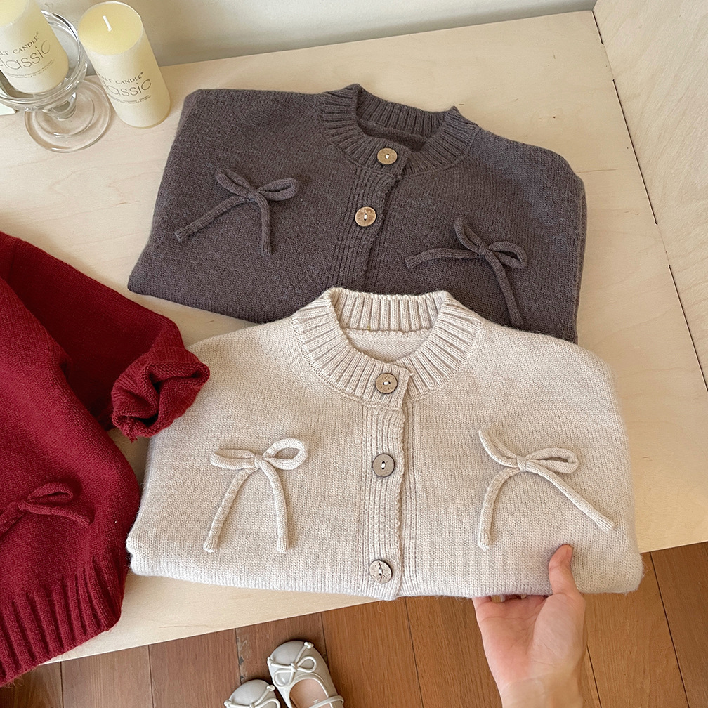 아동 의류 소녀 니트 카디건 가을 아기 소녀 새로운 레트로 달콤한 25 나비 매듭 솔리드 컬러 편안한 스웨터