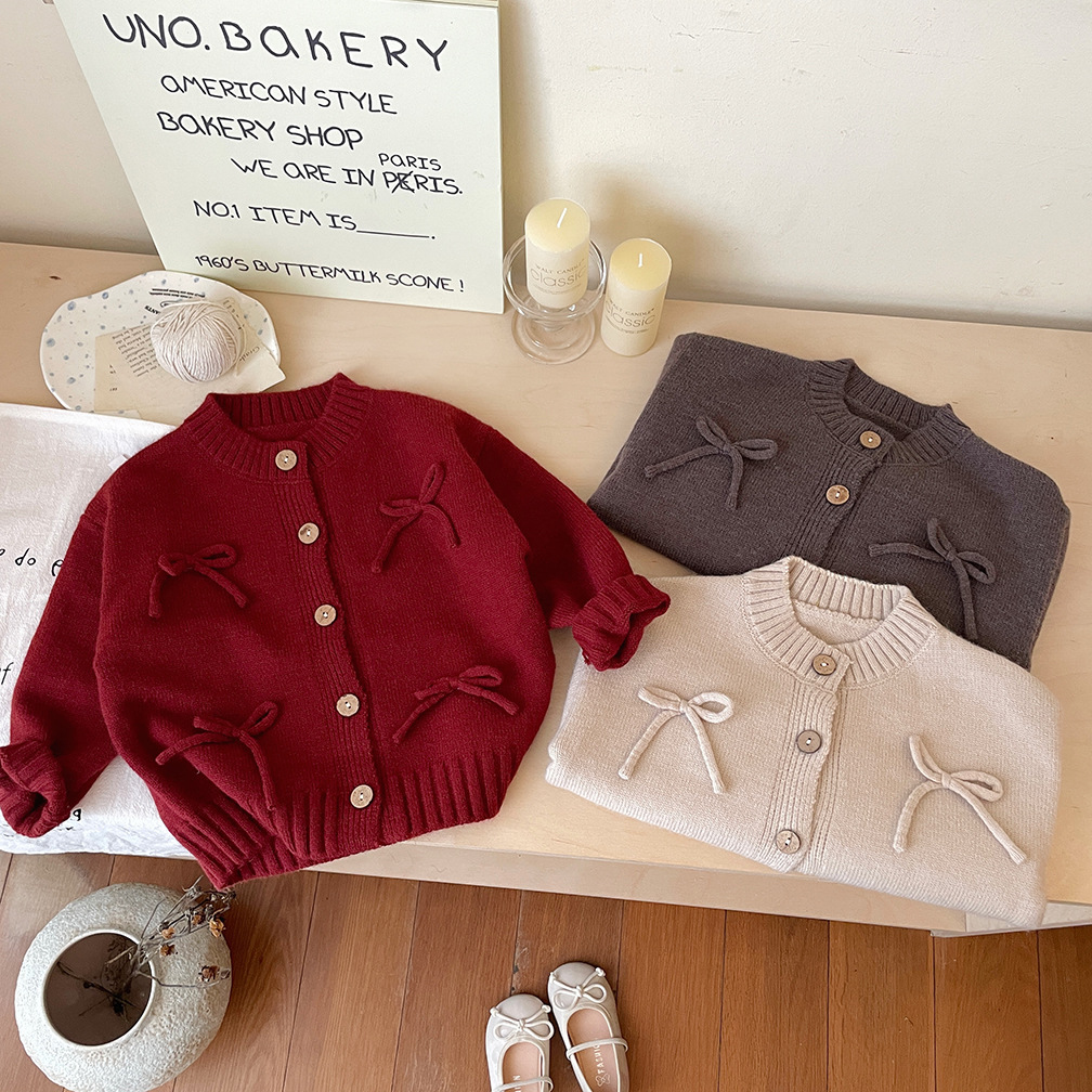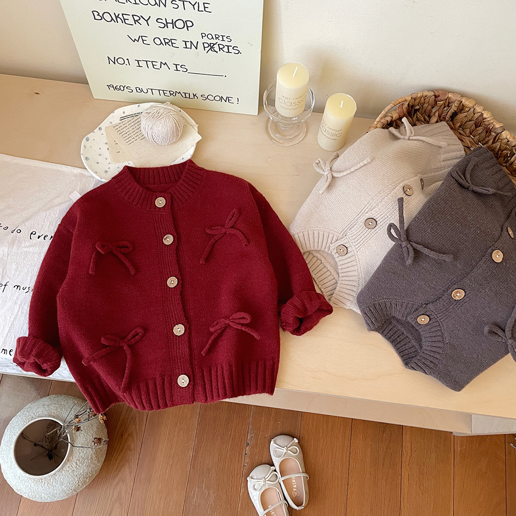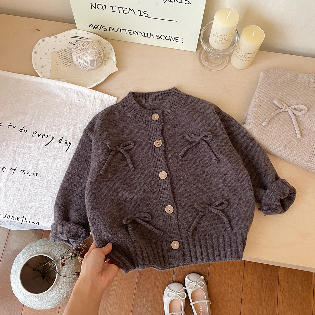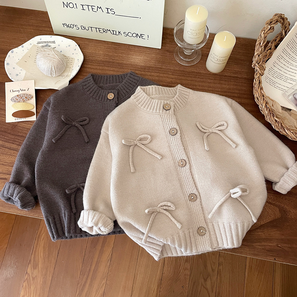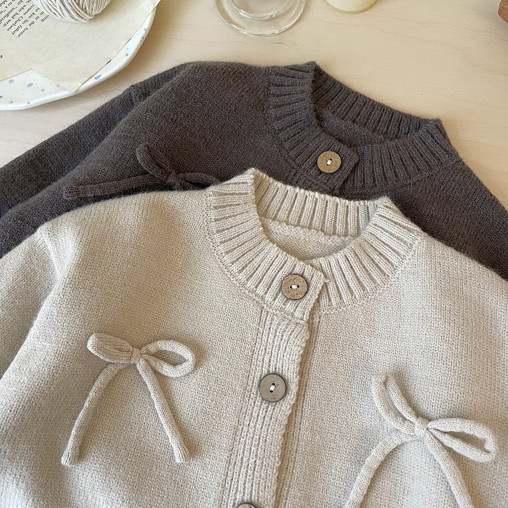 아동 의류 소녀 니트 카디건 가을 아기 소녀 새로운 레트로 달콤한 25 나비 매듭 솔리드 컬러 편안한 스웨터스토어 가기