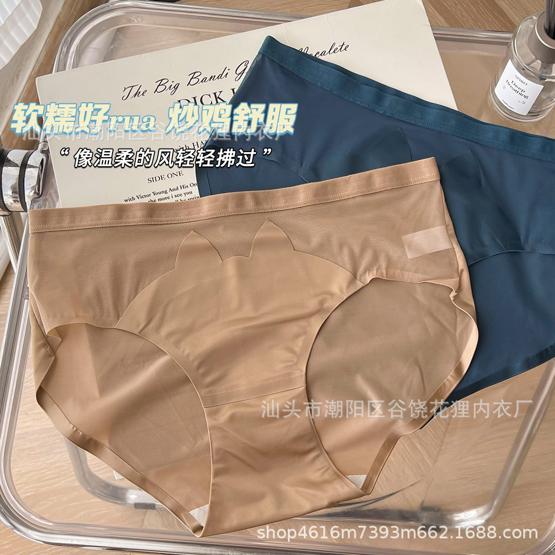 새로운 아이스 실크 새끼 고양이 팬티 여성 추적없는 작은 섹시한 통기성 엉덩이 편안한 알몸 중간 허리 숙녀 브리프스토어 가기