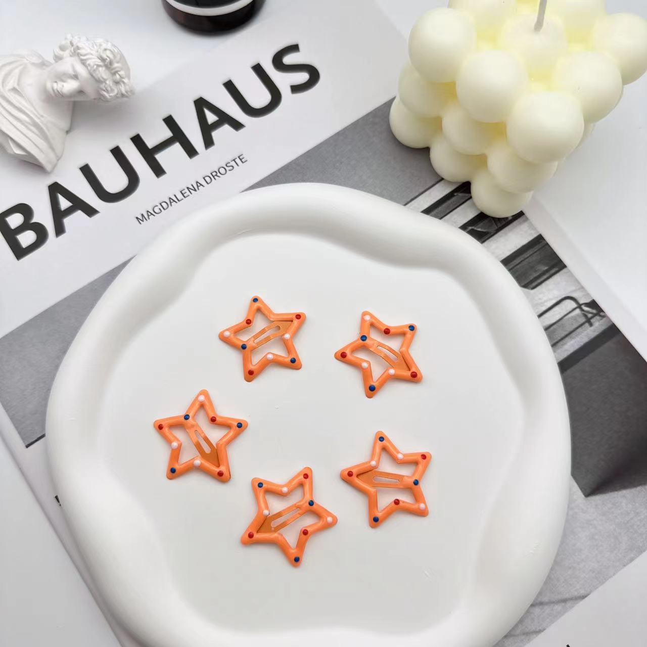 • 솔리드 컬러 스타 헤어 클립 3CM-오렌지