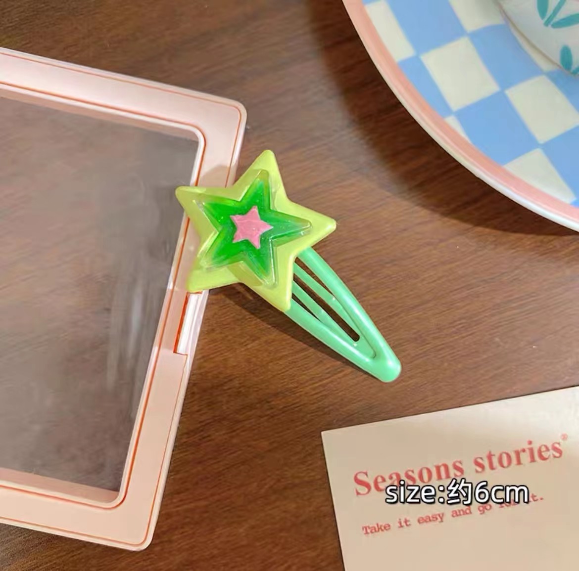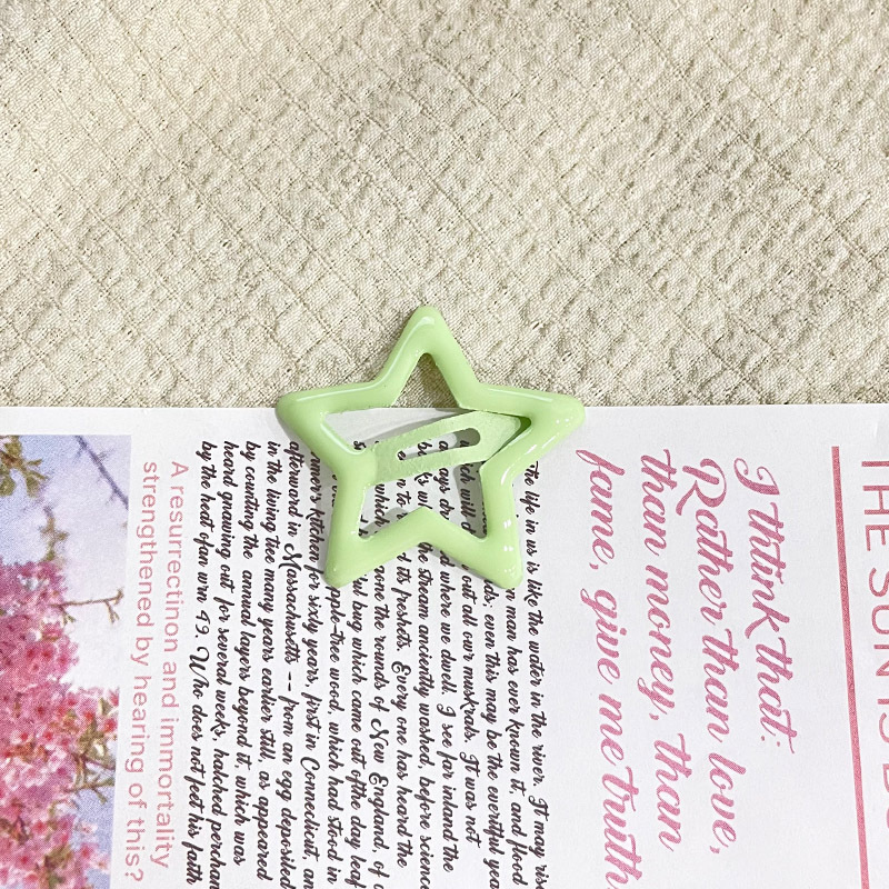 • 솔리드 컬러 스타 헤어 클립 3CM-라이트 그린