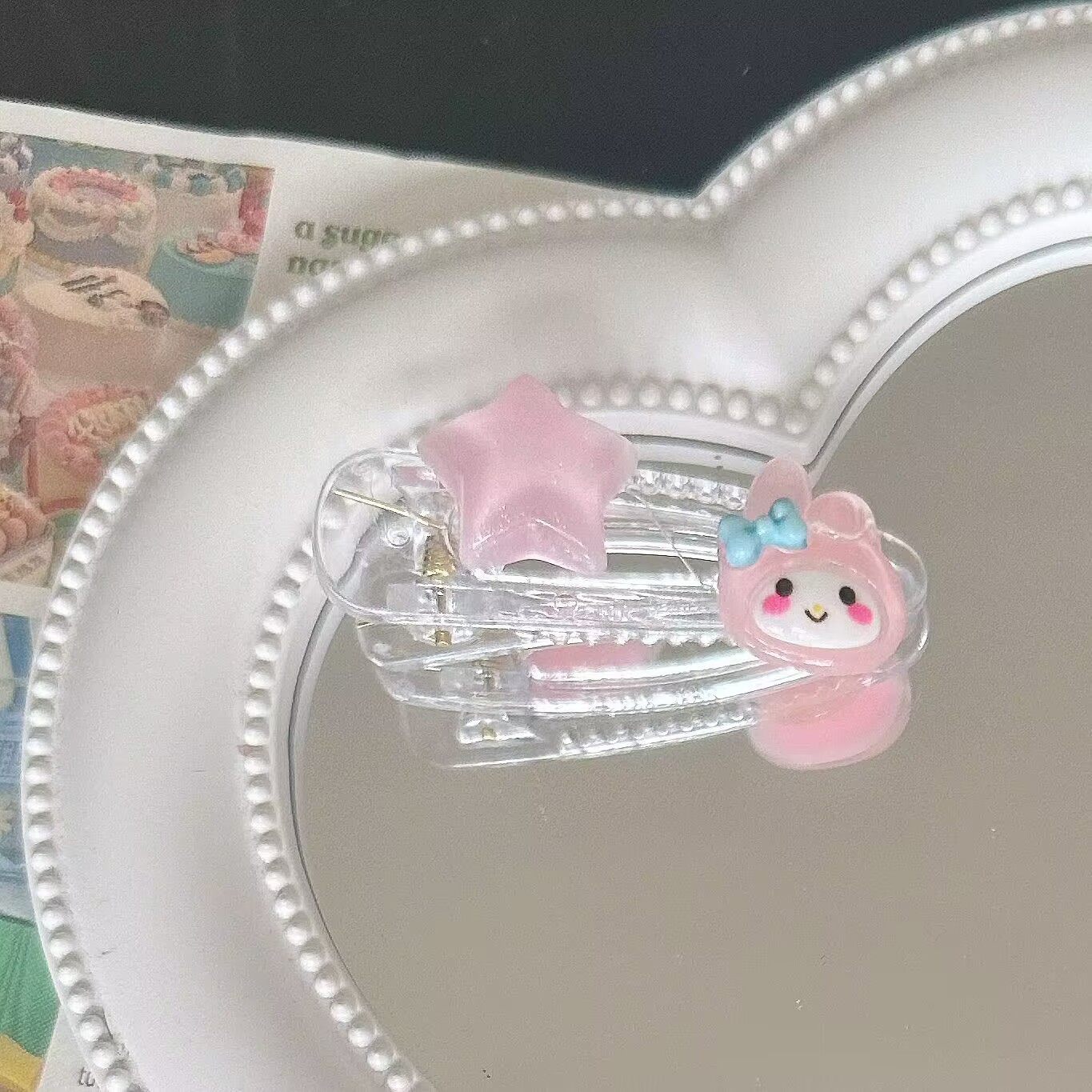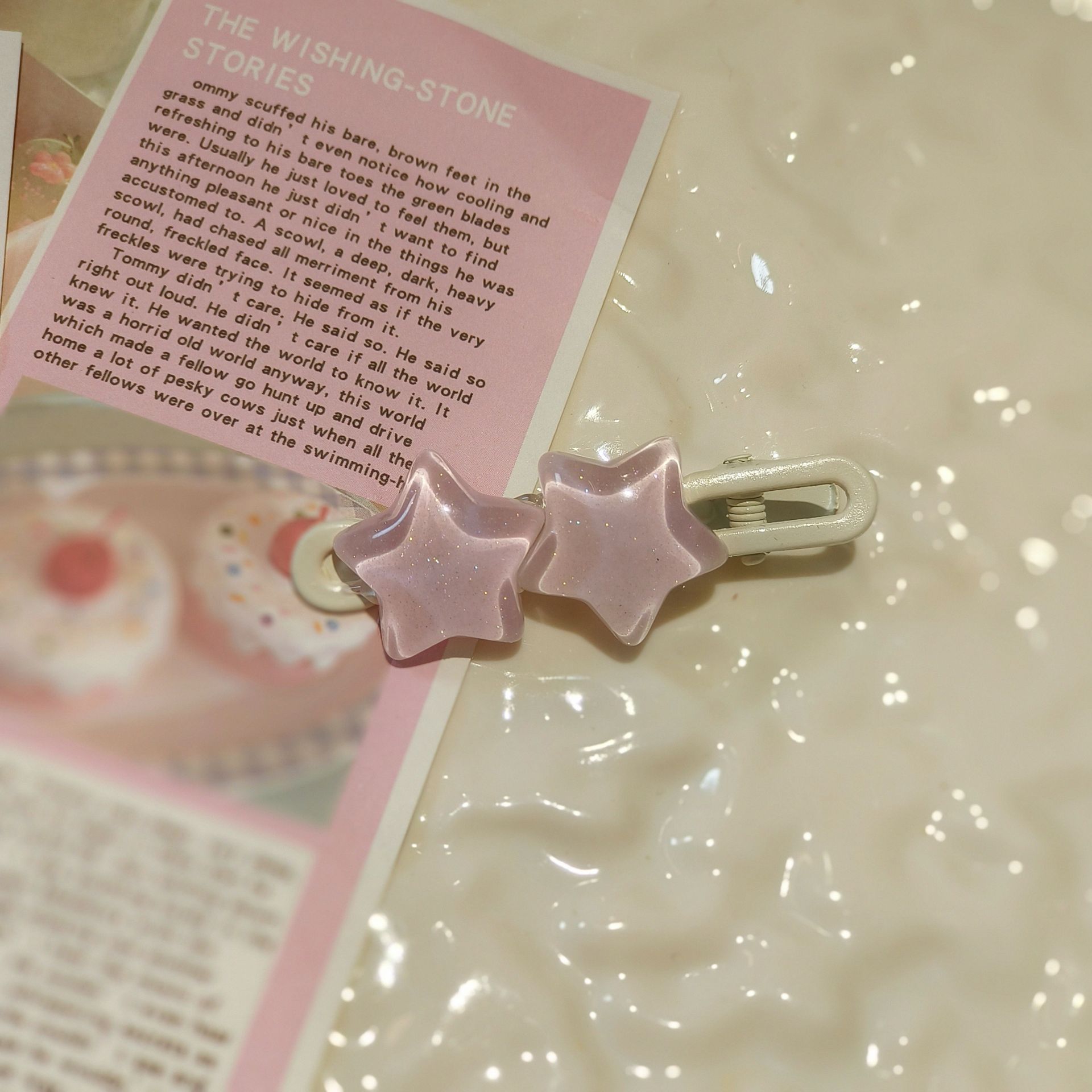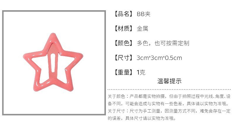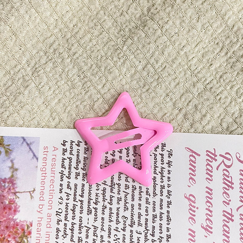 • 솔리드 컬러 스타 헤어 클립 3CM-라이트 핑크