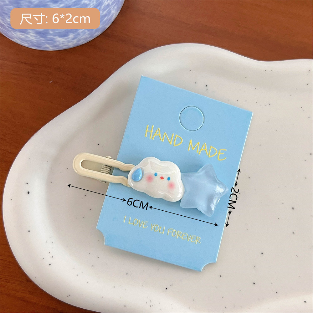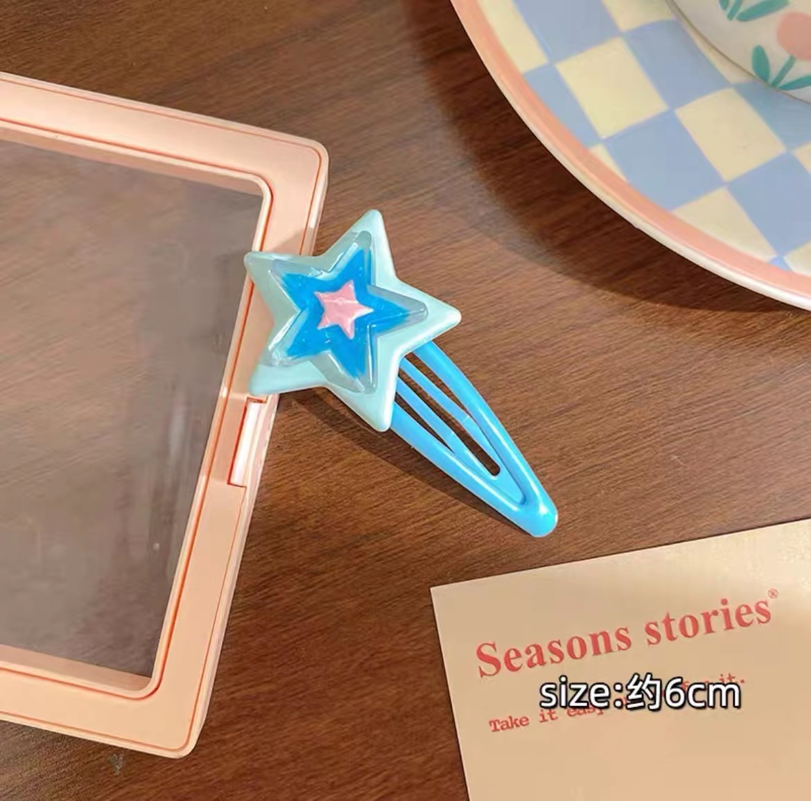 • 솔리드 컬러 스타 헤어 클립 3CM-라이트 블루