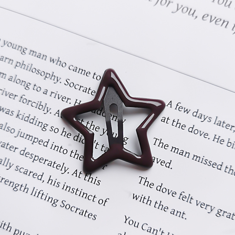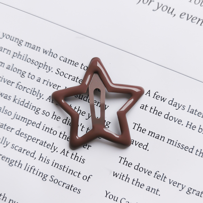 • 솔리드 컬러 스타 헤어 클립 3CM-다크 커피