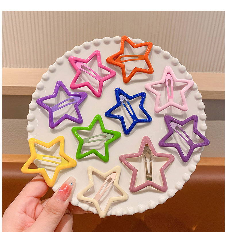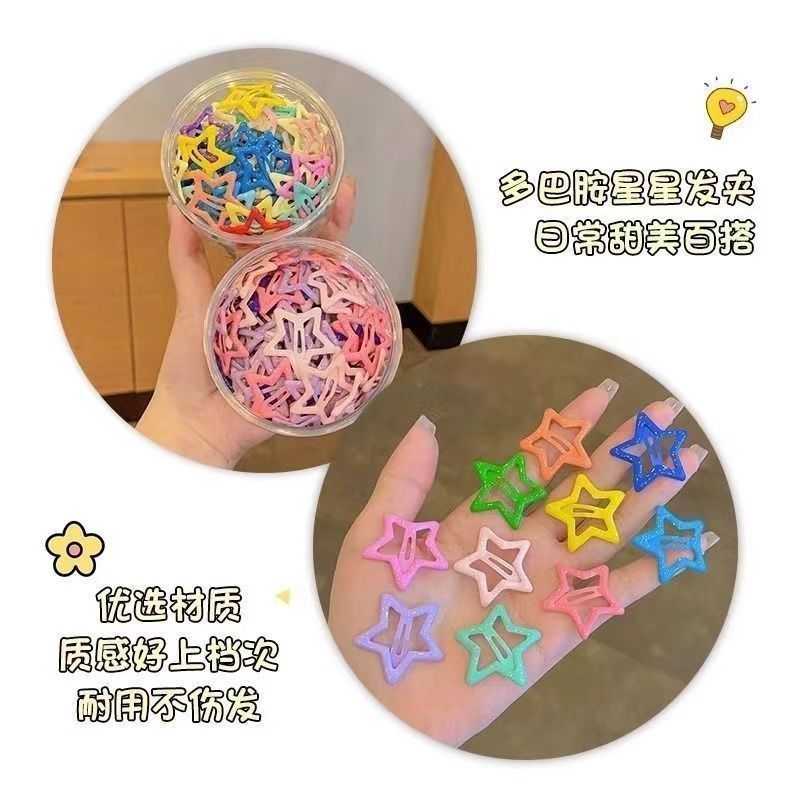 • 솔리드 컬러 스타 헤어 클립 3CM-무작위 혼합 컬러 헤어