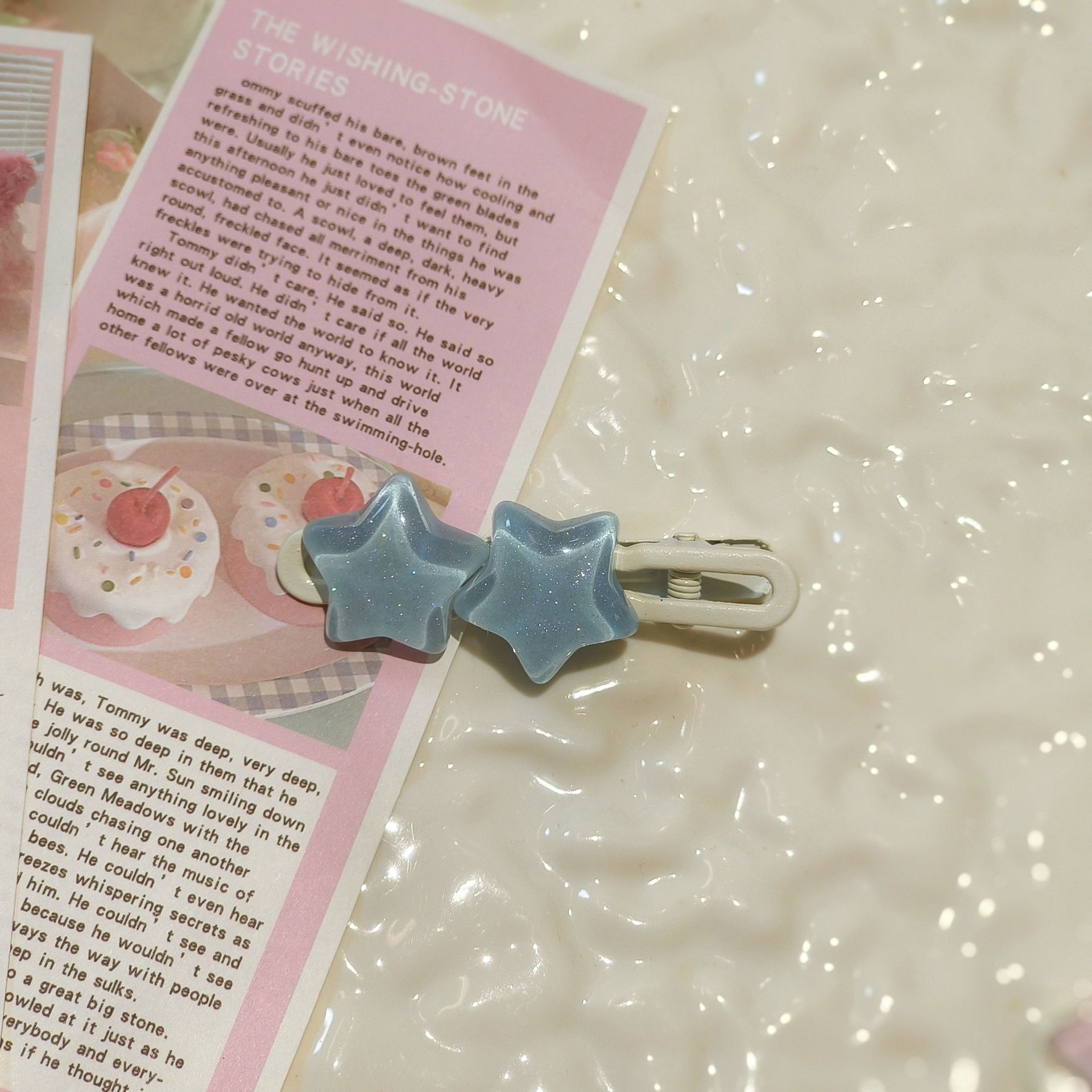 • 솔리드 컬러 스타 헤어 클립 3CM-레이크 블루