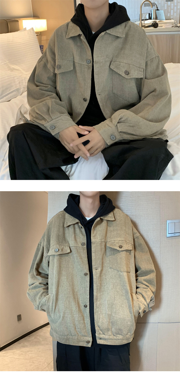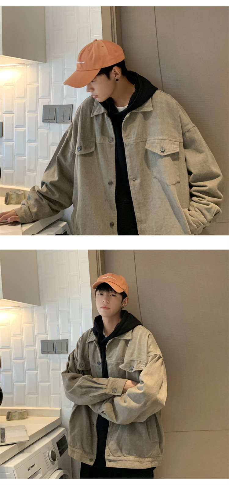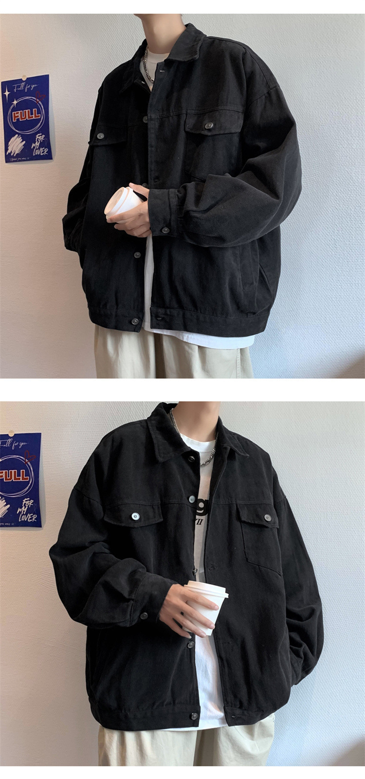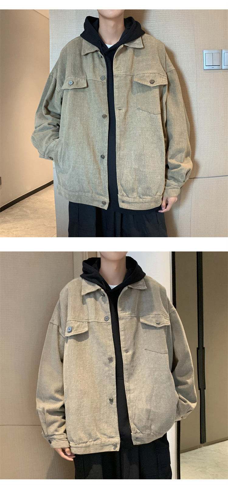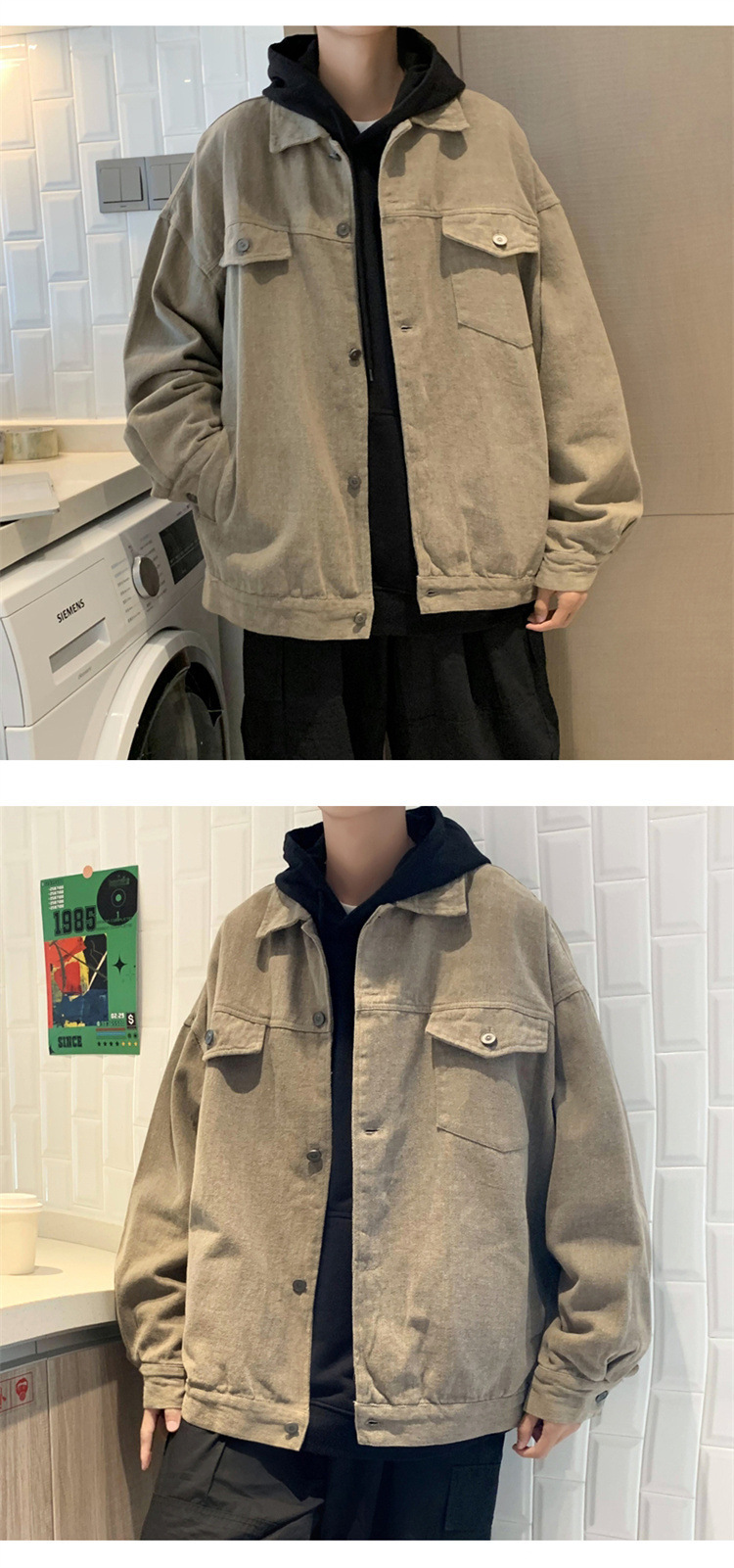 빈티지 랩 코트 남성 봄과 가을 일본 단색 힙합 루즈 캐주얼 인스타그램 스타일 유행 작업 재킷 카디건스토어 가기