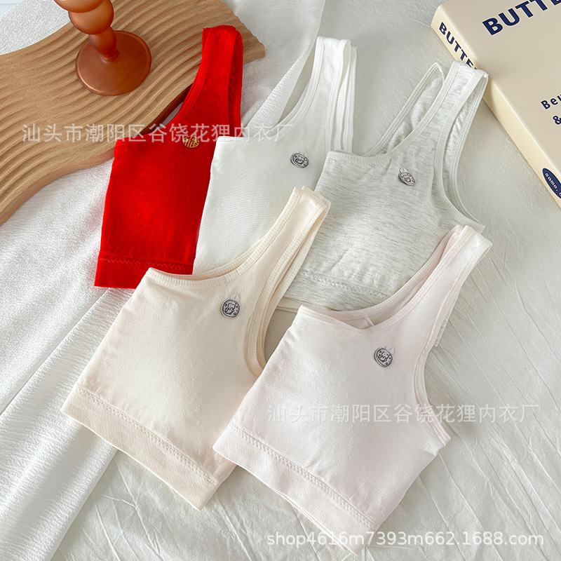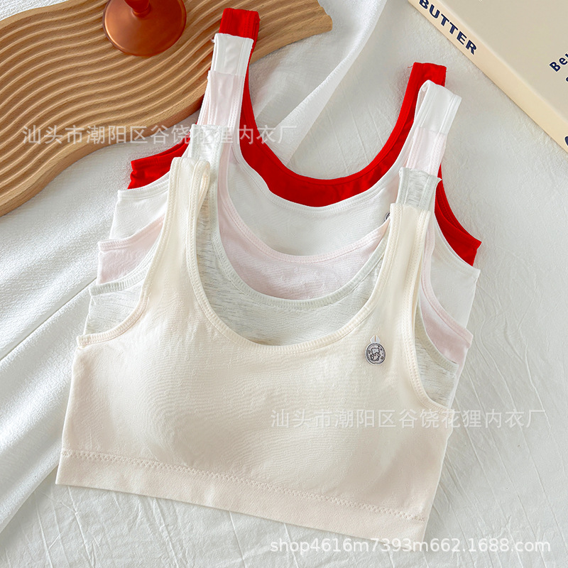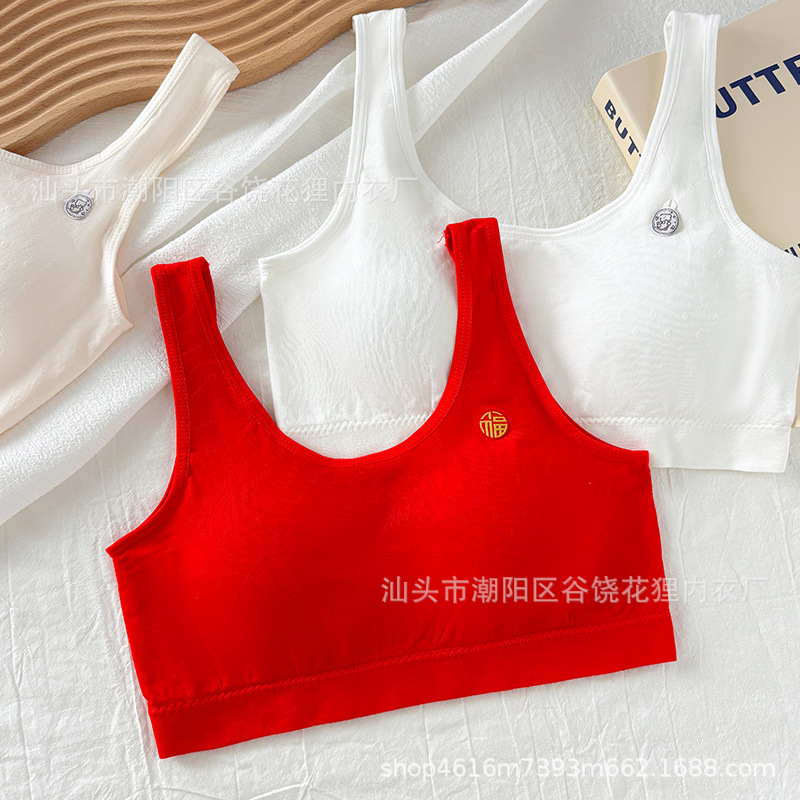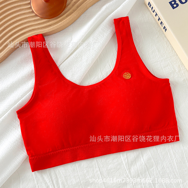 발달 기간 고정 컵 조끼 브래지어의 소녀들을위한 연봉 레드 자카드 코튼 속옷