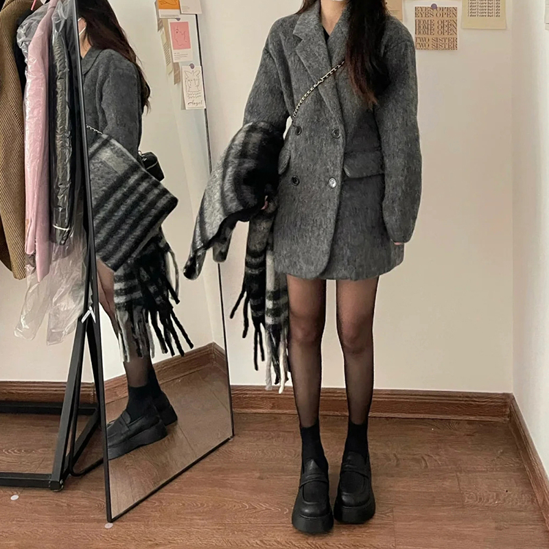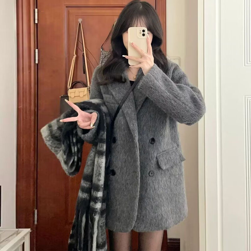 짧은 회색 모직 코트 여성 모직 코트 2024 새로운 가을과 겨울 작은 고급 헵번 스타일 두껍게스토어 가기