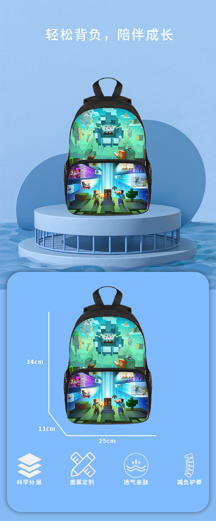 新款我的世界书包儿童大容量高级感双肩包涤纶耐磨休闲护脊背包批